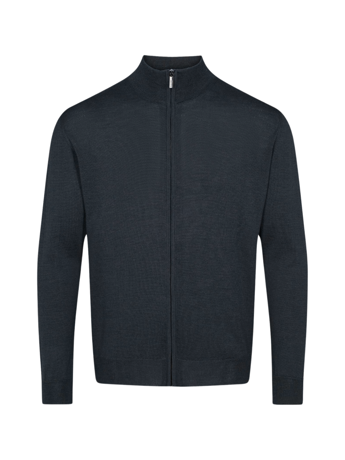 Full Zip Rib at neck, hem and cuffs Modern fit Gauge 12 Zegna Baruffa extra fine merino wool Made in Italy