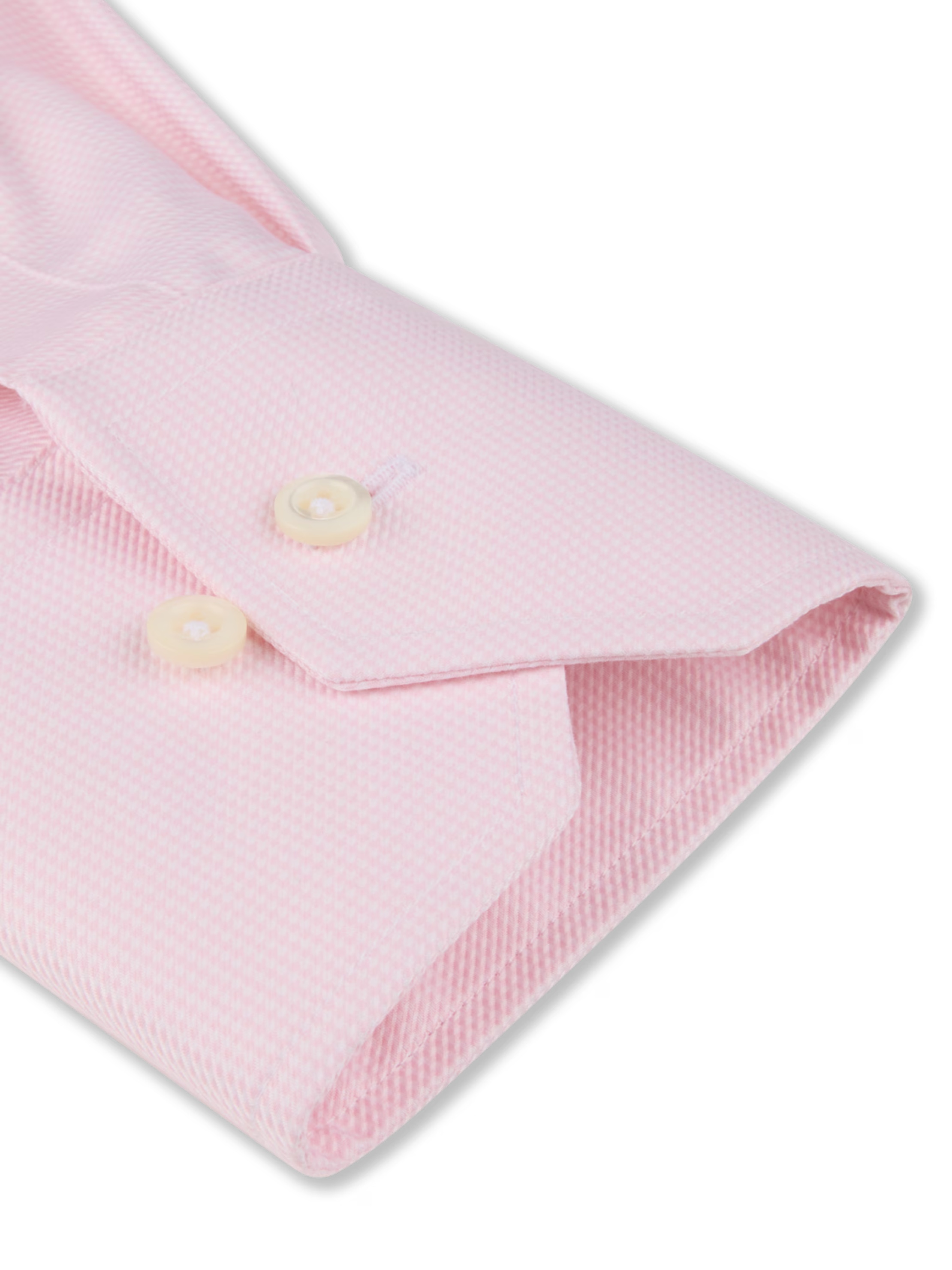 This twill shirt is made of twofold cotton and has a houndstooth pattern. The shirt is detailed with mother of pearl buttons, single cuffs and a cut away collar. Moderate cut away collar, No. ... Sjá nánar