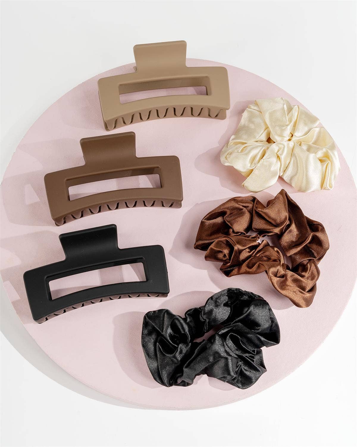 Brushworks Natural Clip & Scrunchie Set – Mjúkt satín sett með scrunchie-teygjum og flottum klemmum sem halda hárinu á sínum stað á öruggan og þægilegan hátt. Fullkomið fyrir fjölbreyttar ... Sjá nánar