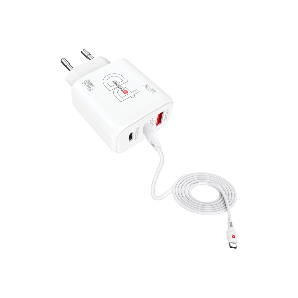 Skross Hleðslutæki 65w GaN 2x USB-C, 1x USB-A og USB-C kapall