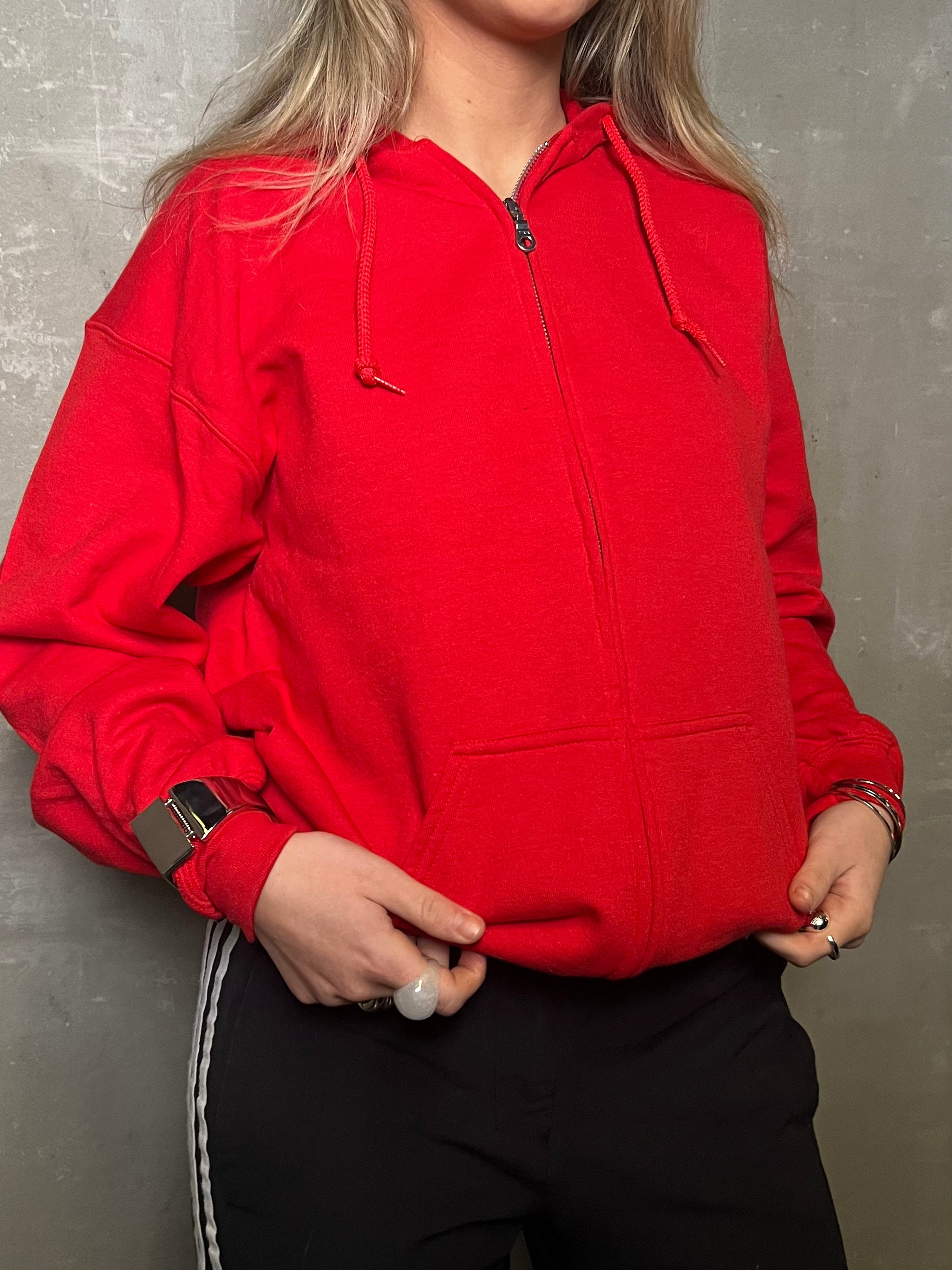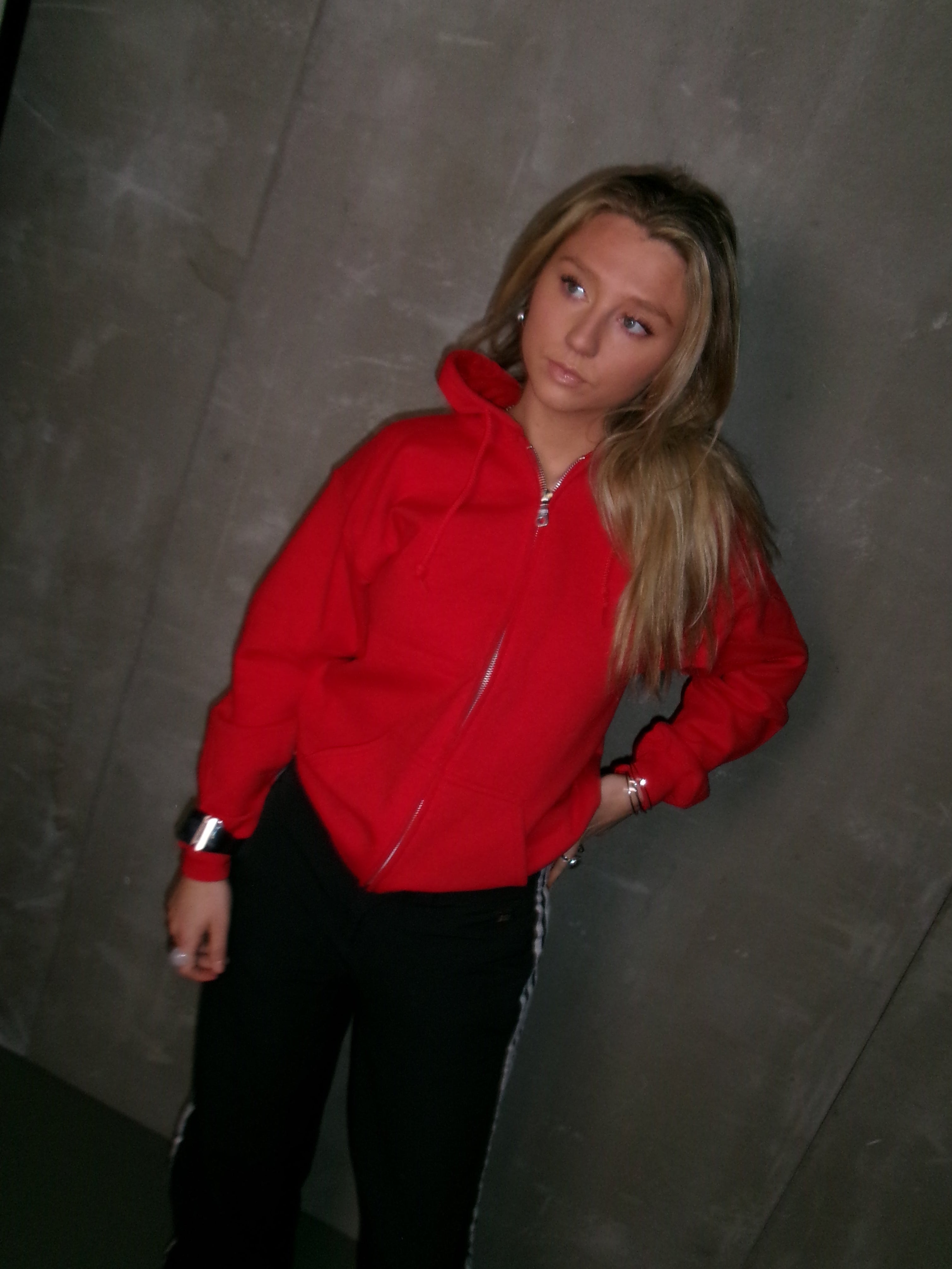 rennd hettupeysa  Módel er 170 cm á hæð og er í stærð M
