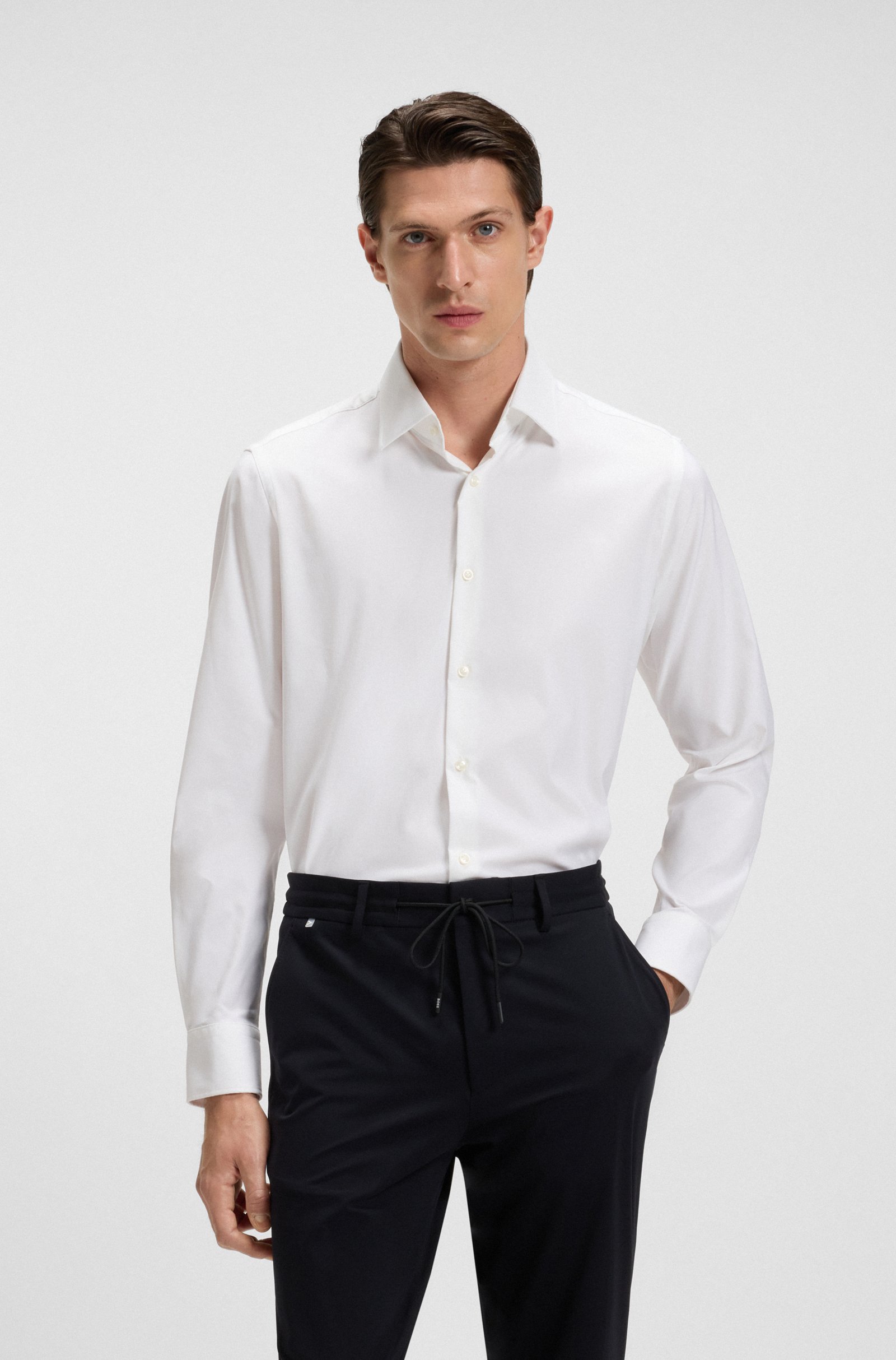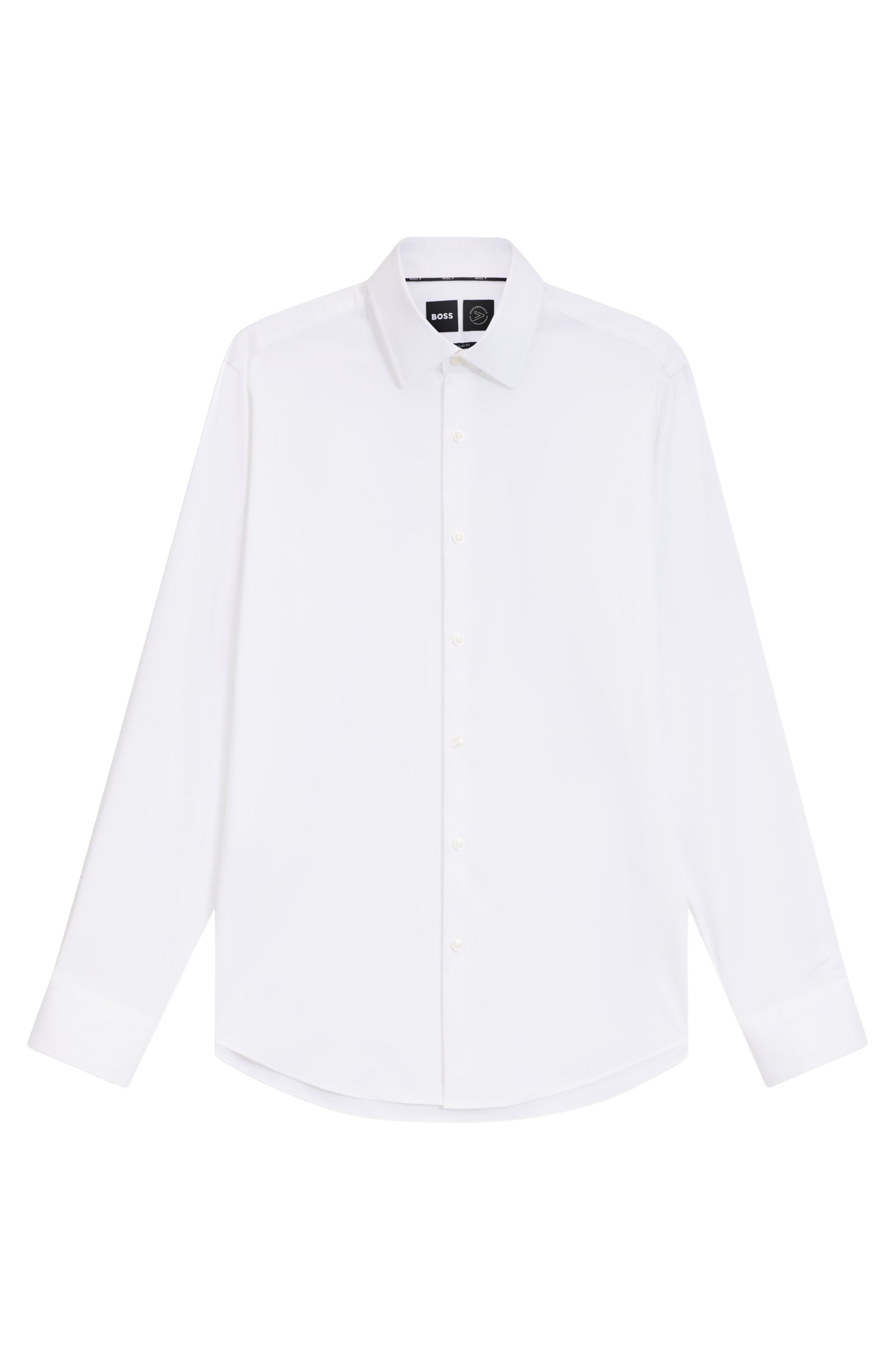 For total freedom of movement, rely on the performance-stretch twill of this BOSS Menswear shirt. Tailored to an easy-wear regular fit. Regular fit Kent collar Angled cuffs 92% Polyamid, 8% ... Sjá nánar