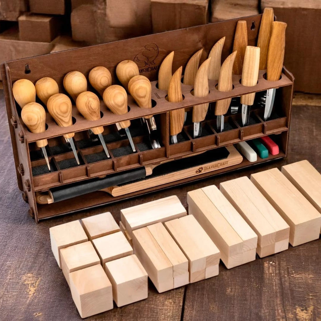 BEAVERCRAFT® Stórt tréskurðarsett (20 verkfæri + fylgihlutir)