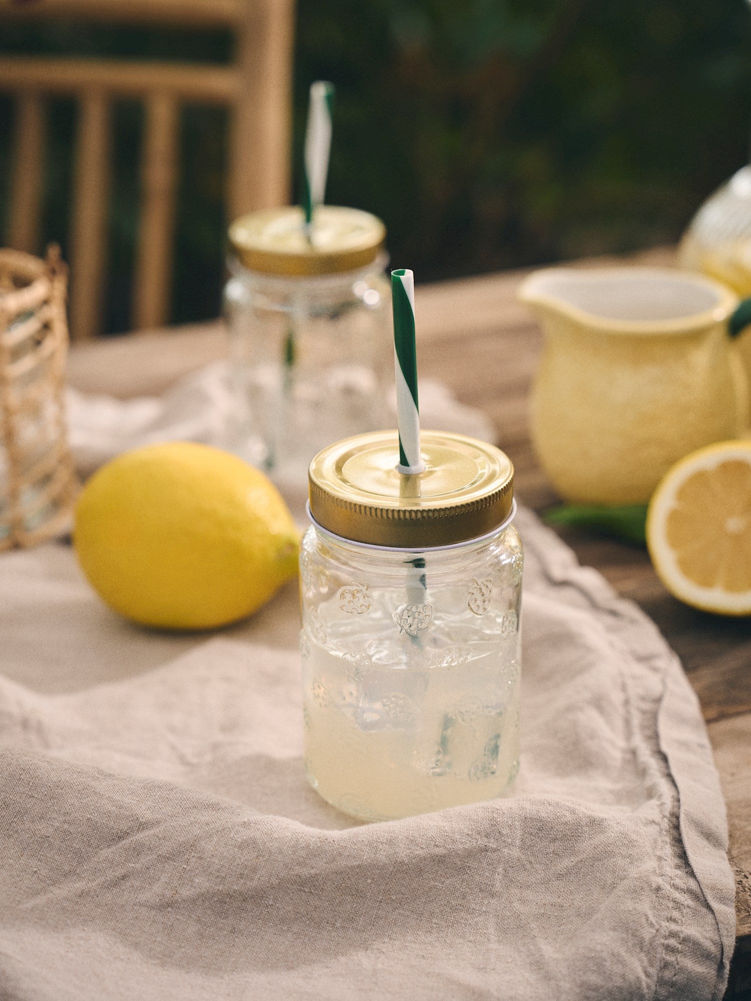 Set a lovely table "Enjoy refreshing drinks with a touch of charm," Anna says, admiring the glass with a straw. "And the lid helps prevent spills during outdoor gatherings," Clara adds.