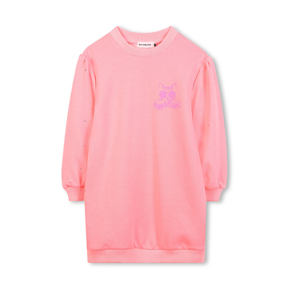 Bleikur bómullarkjóll frá Billieblush með skrautsteinum á ermum.