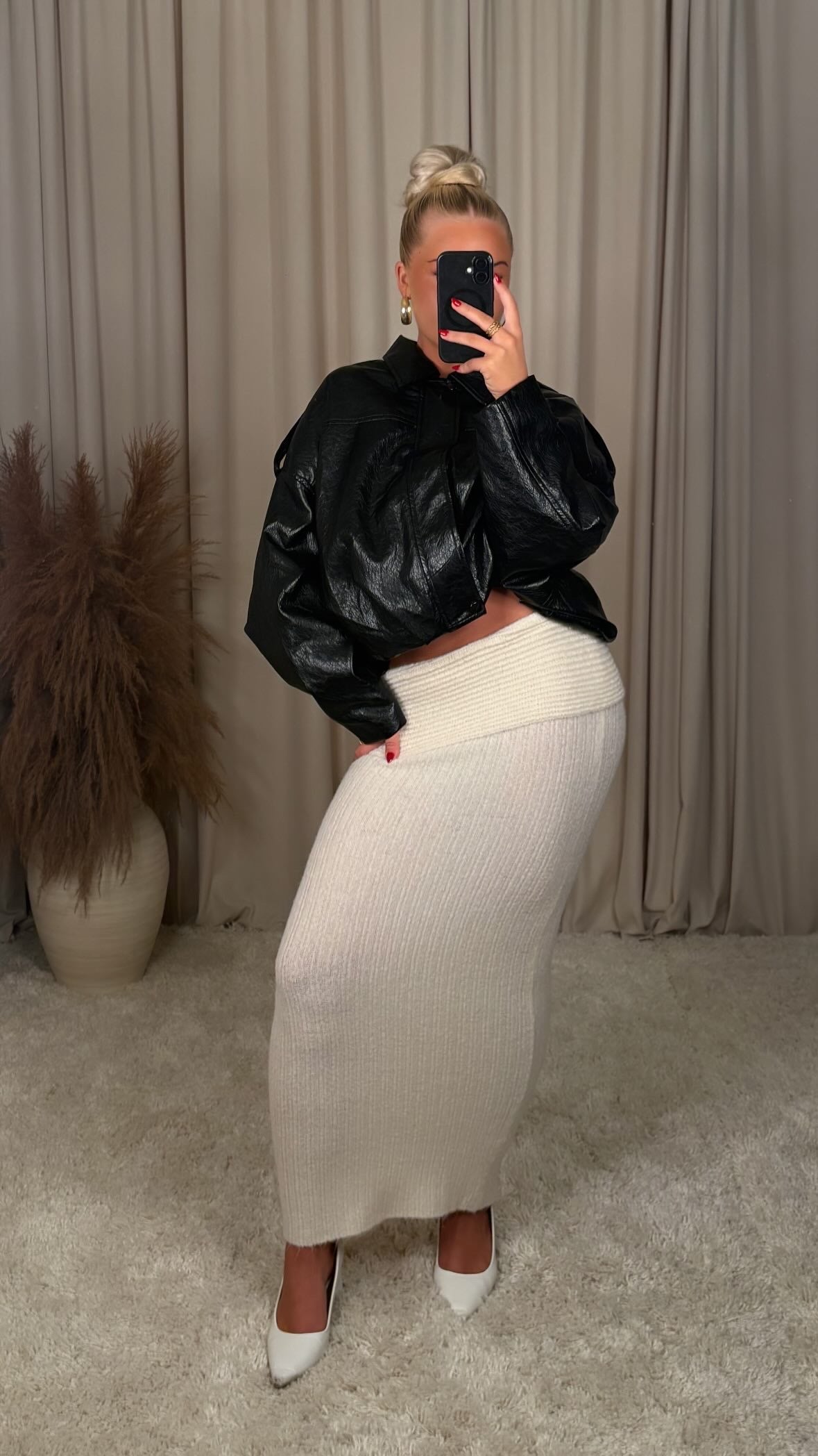 Æðislega flott pils úr mjög þæginlegu knit efni, það er teygja í efninu  modelið er 168cm og er í stærð S/M