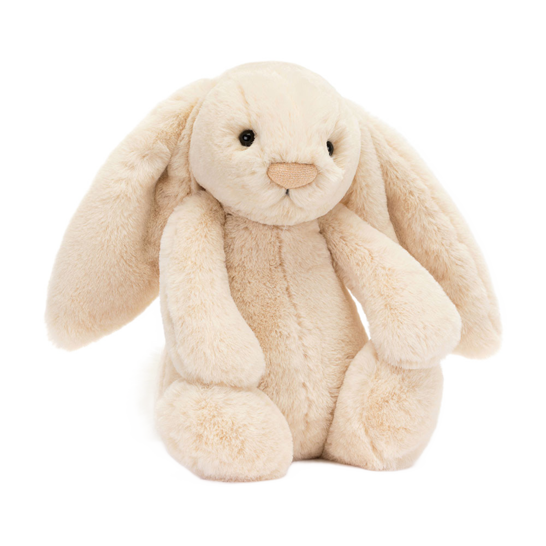 Dimensions: 31cm x 12cm x 9cmSitting Height: 23cmMain Materials: PolyesterInner Fillin Polyester Fibres, PE BeansHard EyeSKU: BAS3WIL | Bashful Lux Willow medium