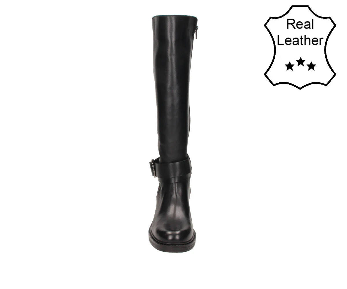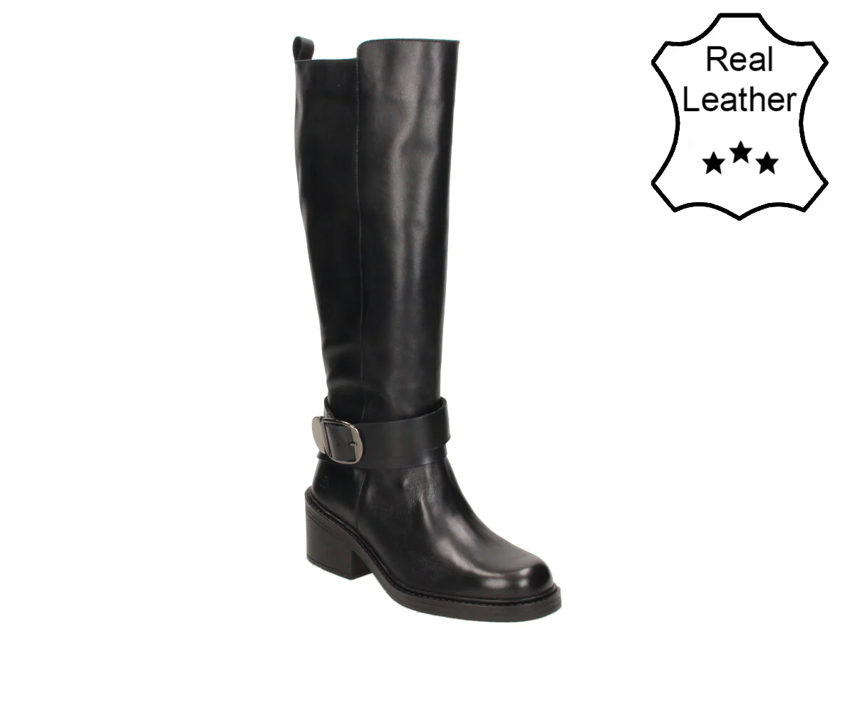 – Svart – Ekta leður að utan – Fóður að innan – Leðurinnlegg – Gúmmísóli – Venjuleg númer – Hæll 6 cm Æðisleg stígvél með þægilegum passlegum hæl og spennu um ökklann. Rennd að ... Sjá nánar