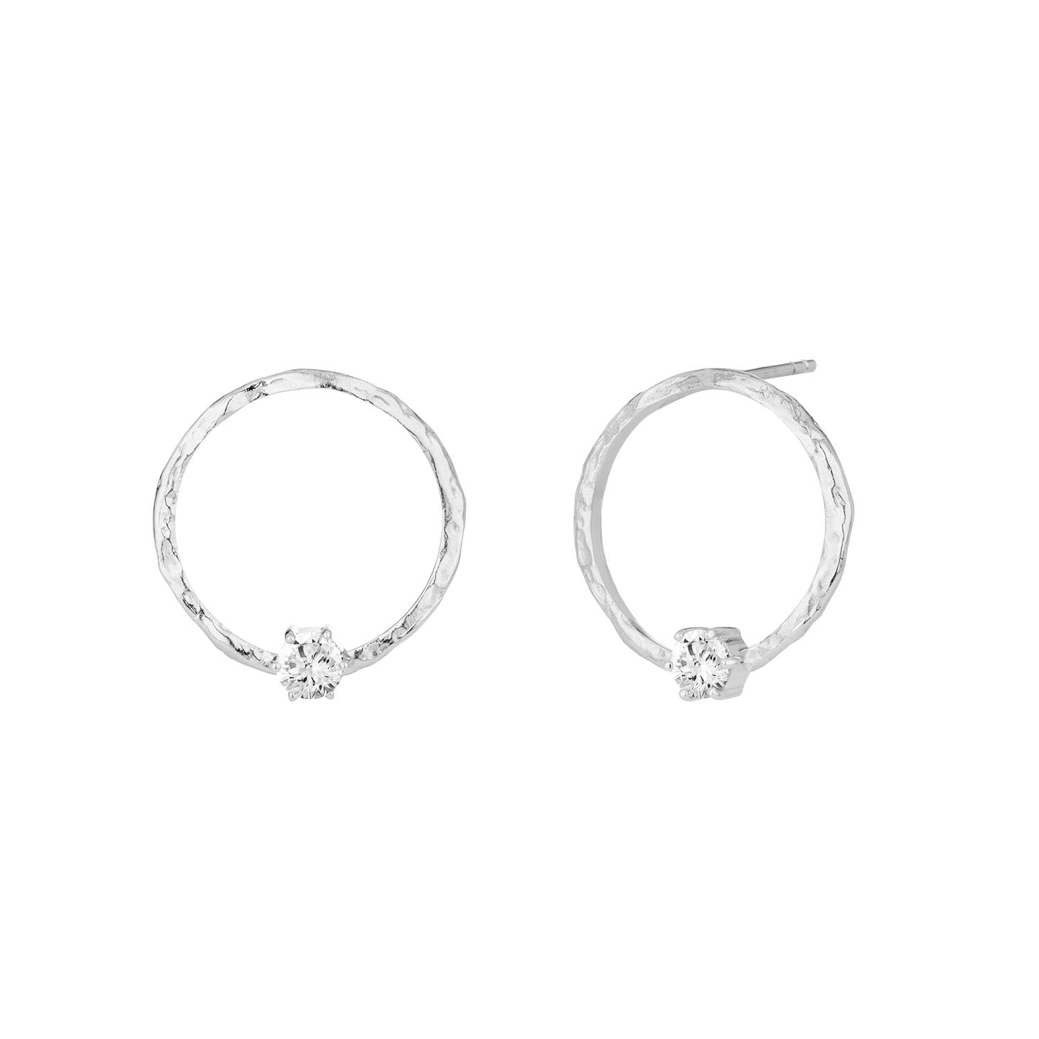 Eyrnalokkarnir eru í Gárulínu jens. Lokkarnir eru handsmíðaðir úr rhódíumhúðuðu silfri með cubic zirconia steinum. Þvermál lokkanna er um  17  mm eða stærð Medium. Hönnuður og smiður er ... Sjá nánar