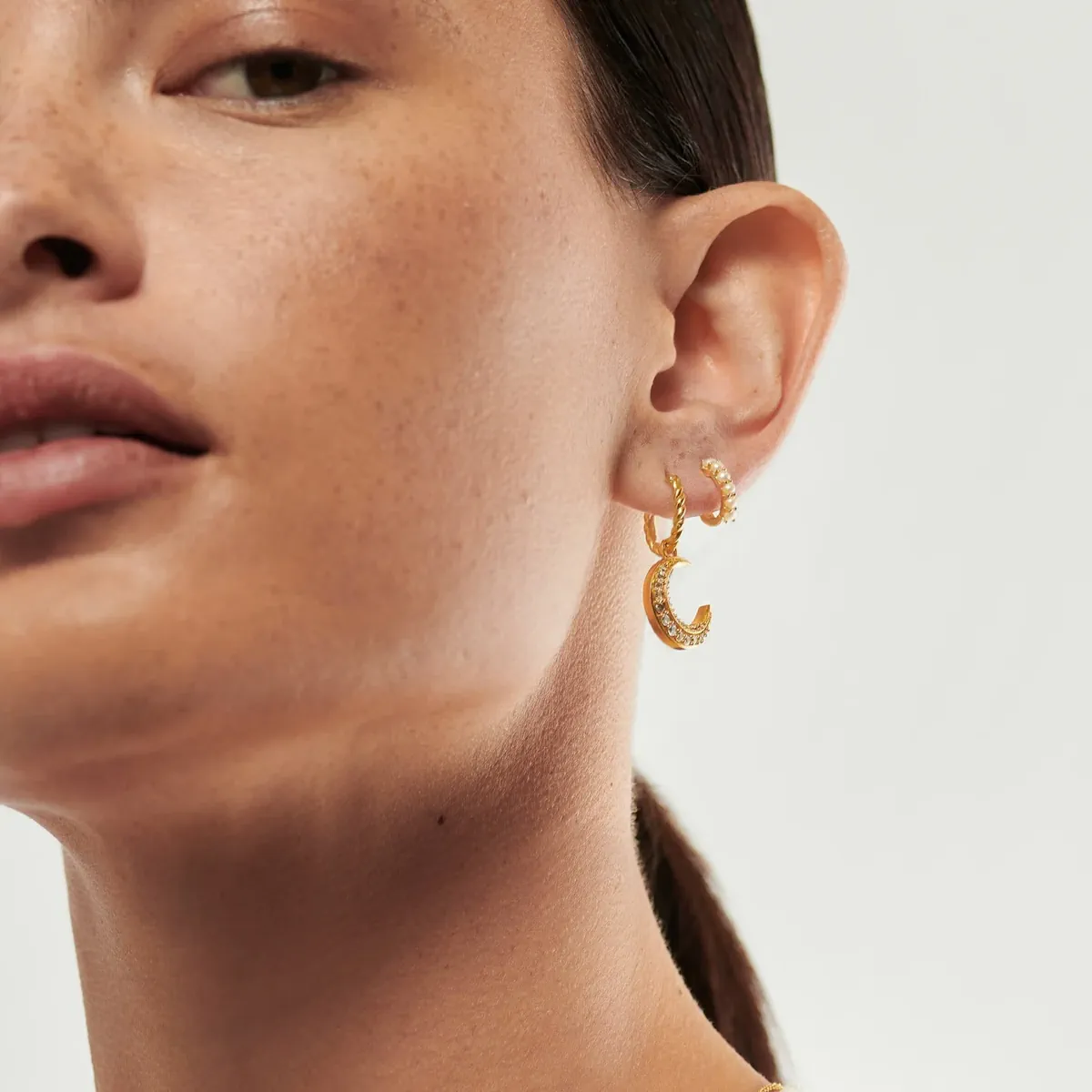 Efni eyrnalokka: 18kt gullhjúpað silfur Stærð lokka: 11.2mm x 11.6mm Steinar: Perlur