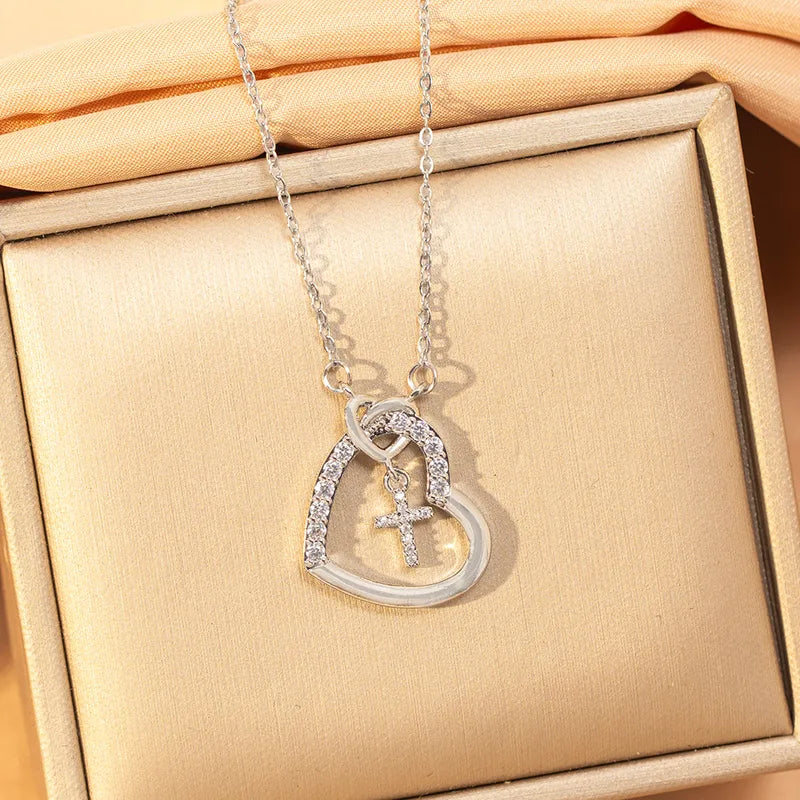 Hjarta og Kross Hálsmen með Sirkonsteinum