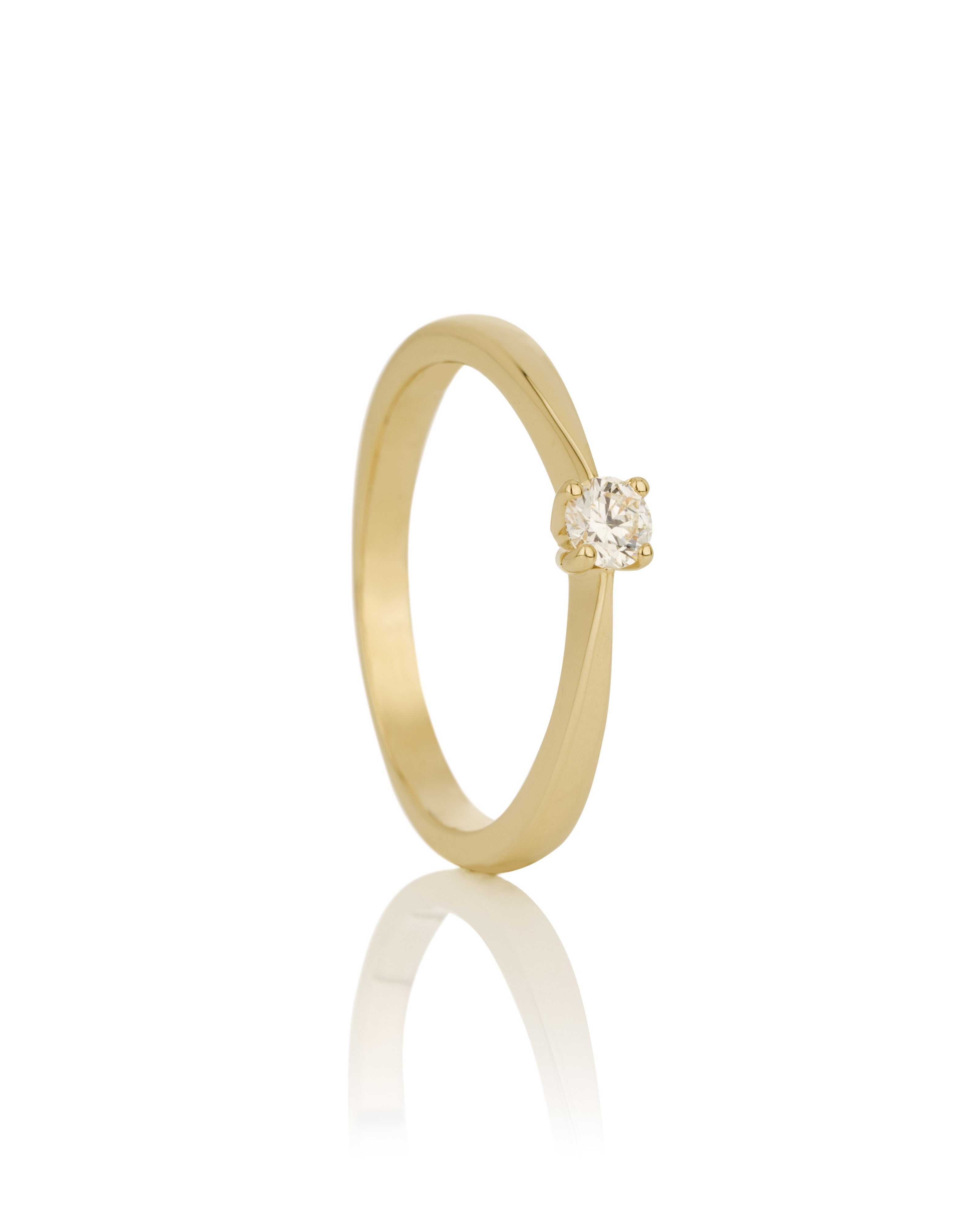 14 kt gull Demantshringur  Vr: 110 102BR5 Fallegur og klassískur demantshringur með 4 klóm og litlu hjarta inní baug.  Efni: Gull Karöt: 14 Yfirborð: Pólerað   Steinn: ... Sjá nánar