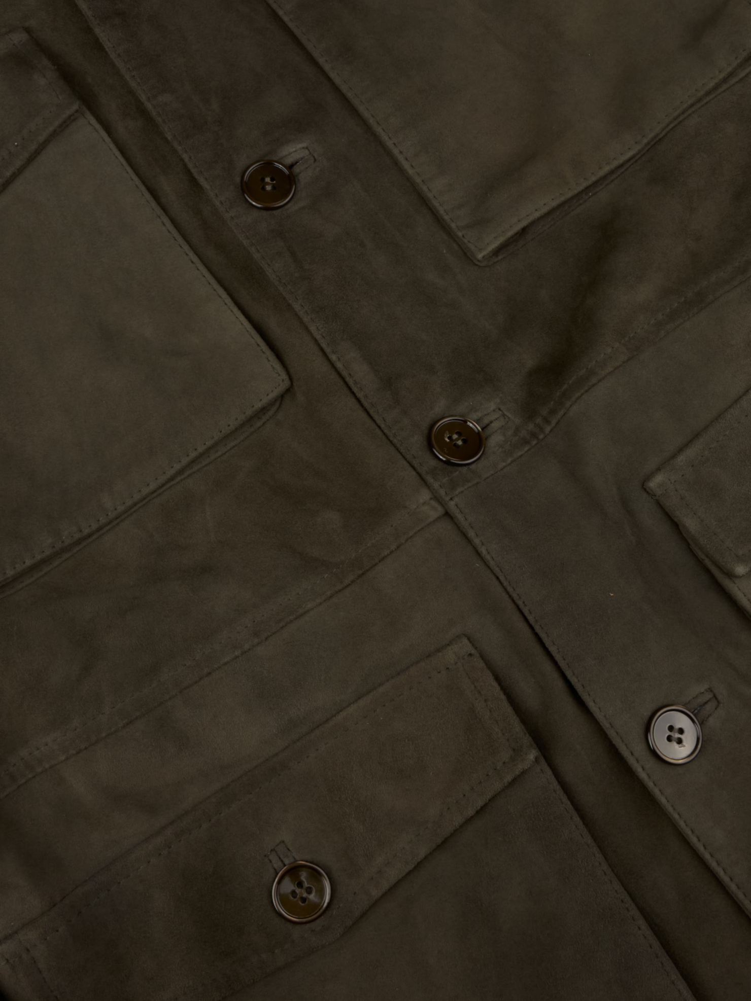 This jacket is made of suede and is detailed with four pockets at front and mother of pearl buttons. Mother of Pearl Buttons Leather 100%