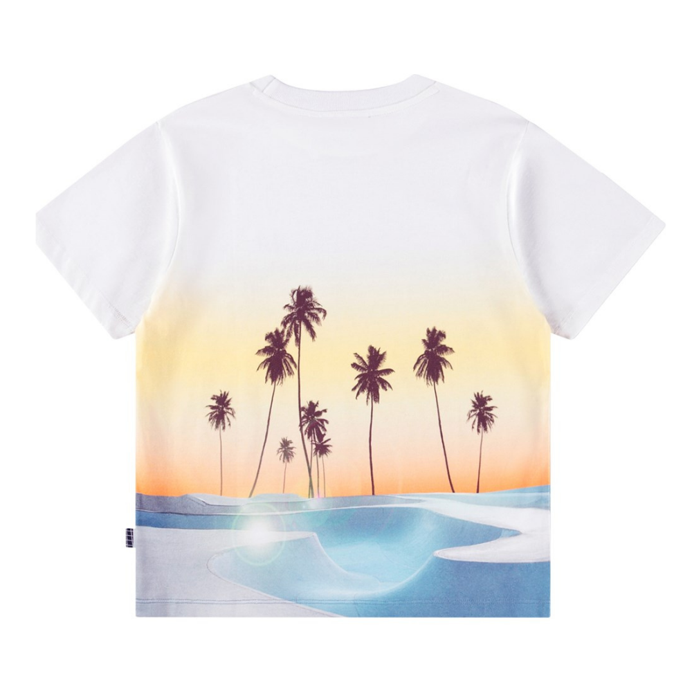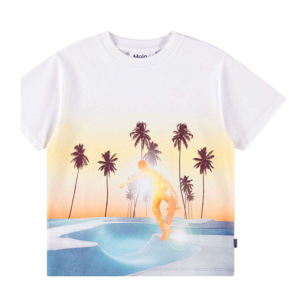 Ljós stuttermabolur frá Molo með mynd að framan og aftan. 100% bómull.