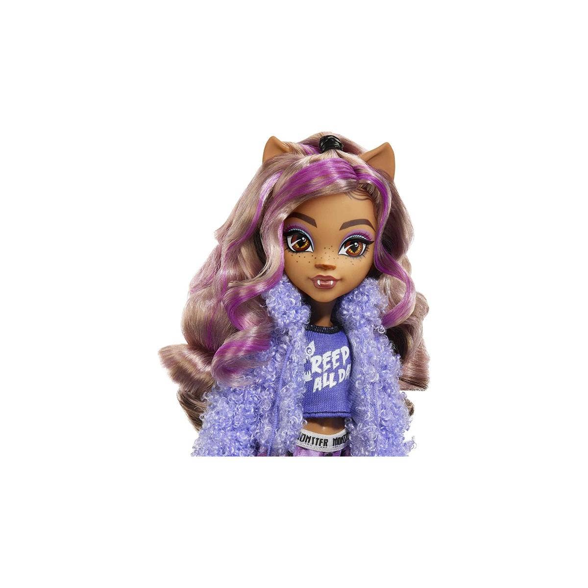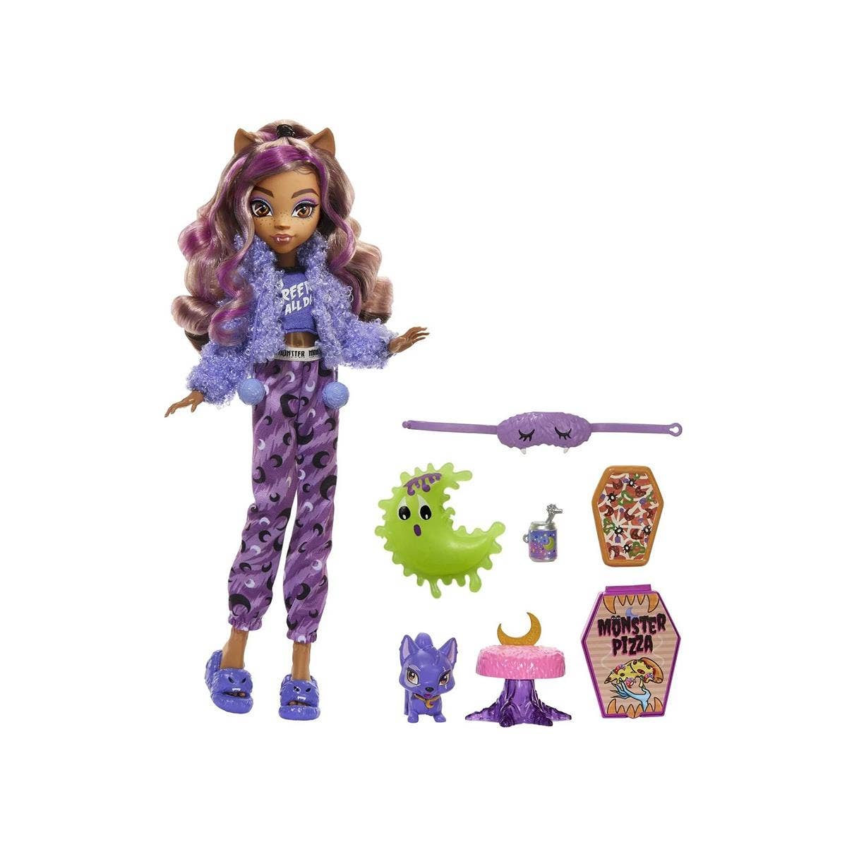 Creepover Clawdeen dúkka í náttfötum, tilbúin í gistipartý.