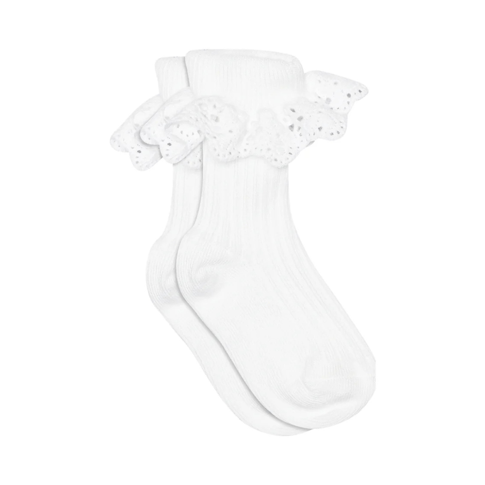 Fallegir, ljós bleikir bómullarsokkar frá MP með pífu við ökkla. 80% bómull, 17% polyamide og 3% elastane.