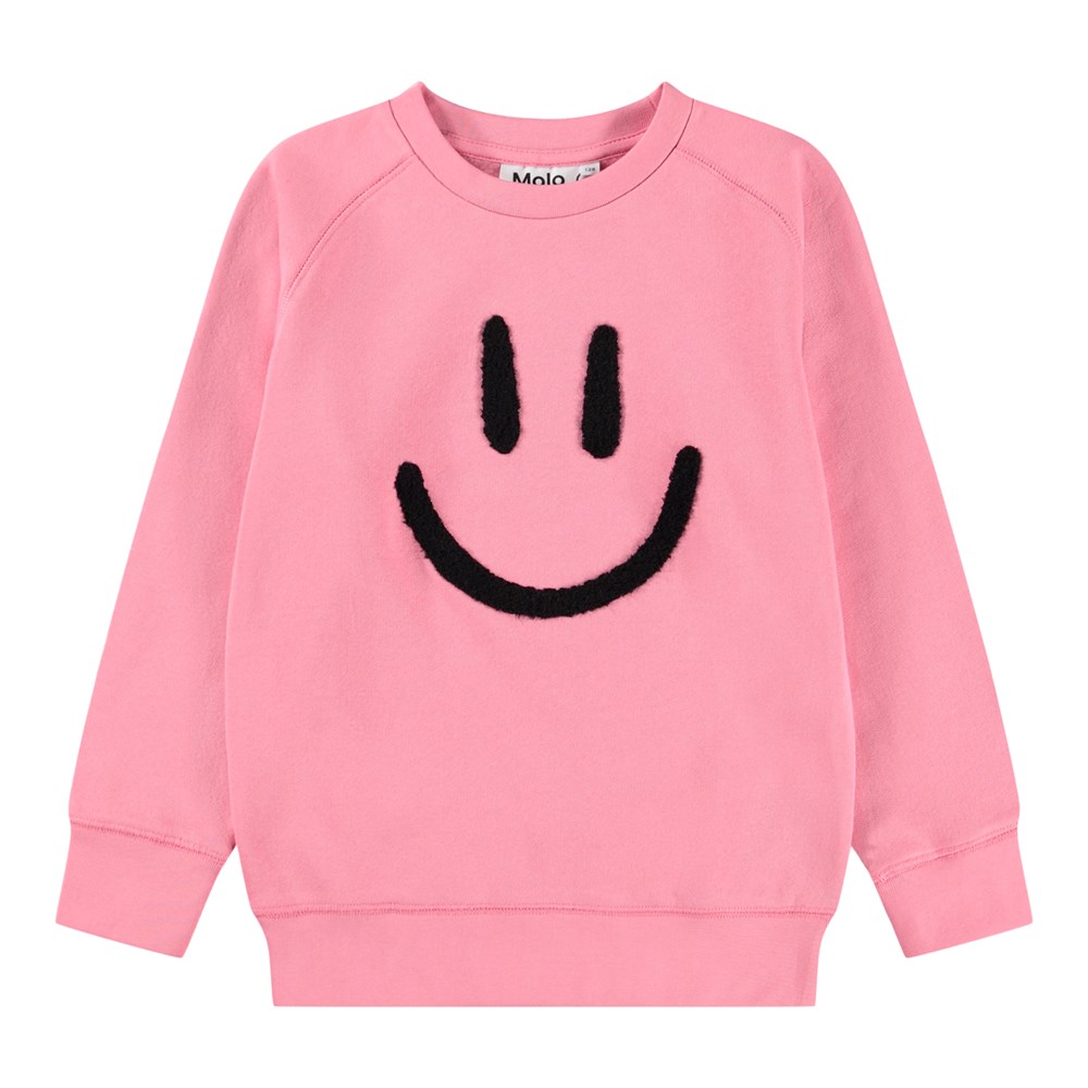 Bleik jogging peysa með hvítum broskalli að framan. Stroff við ermar og mitti. 100% bómull.