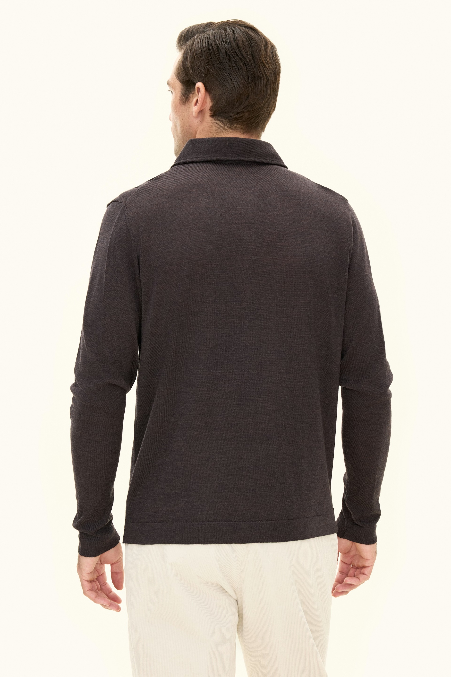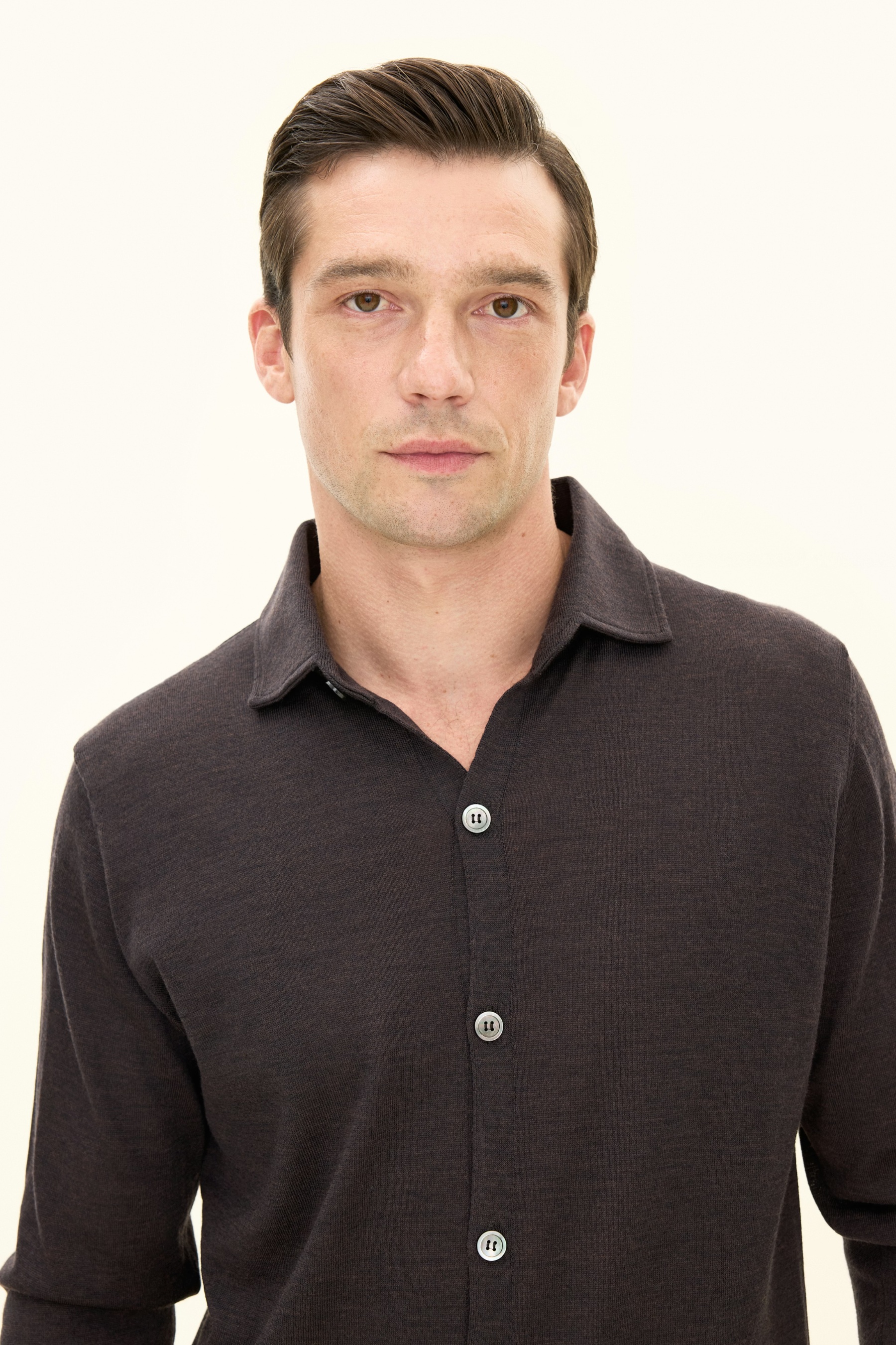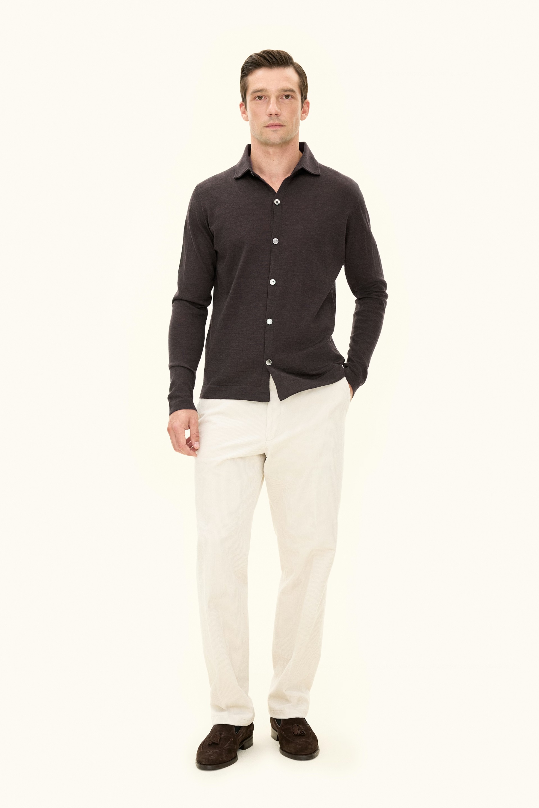Cardigan in extra fine merino wool from Tollegno, Italy. Knitted in 14 gauge. The wool fibres are long, giving the garment a luxurious and slightly shiny surface. Sewn-on collar in a classic ... Sjá nánar