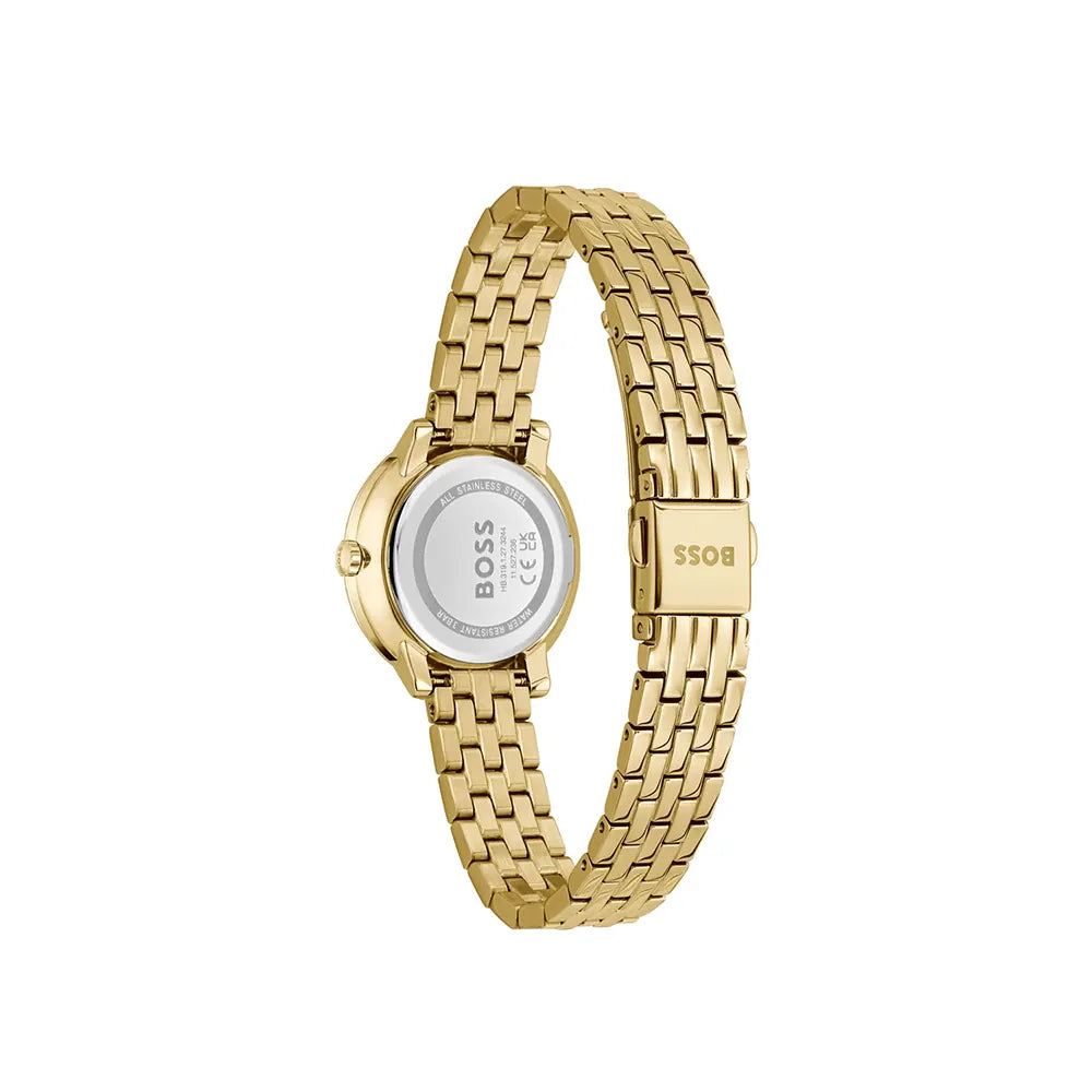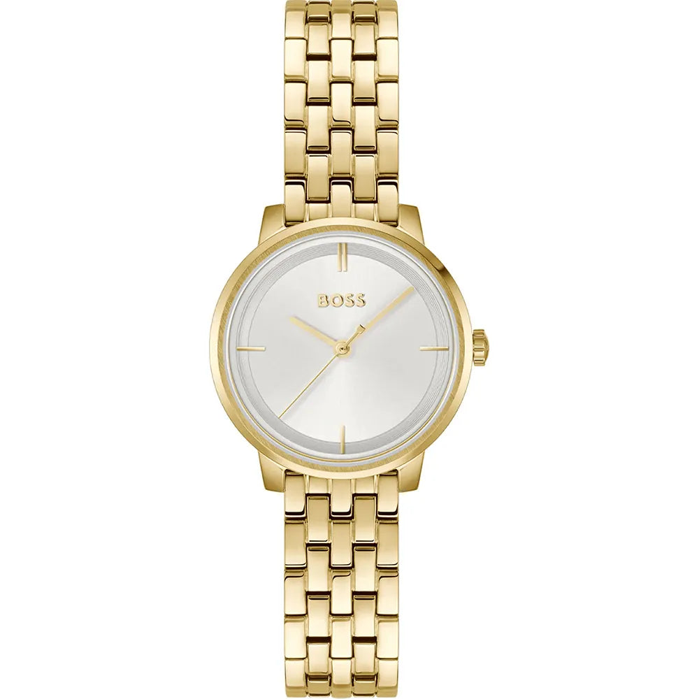 Hugo Boss Lucia Vörunr:1502835 Fallegt dömuúr frá Hugo Boss. Gangverk:Rafhlaða/Quartz Stærð:28mm Úrkassi:Gyllt Stál  Keðja/ól:Gyllt Stál Skífa:Silfurlit Gler:Hert gler Vatnsvörn:30m ... Sjá nánar