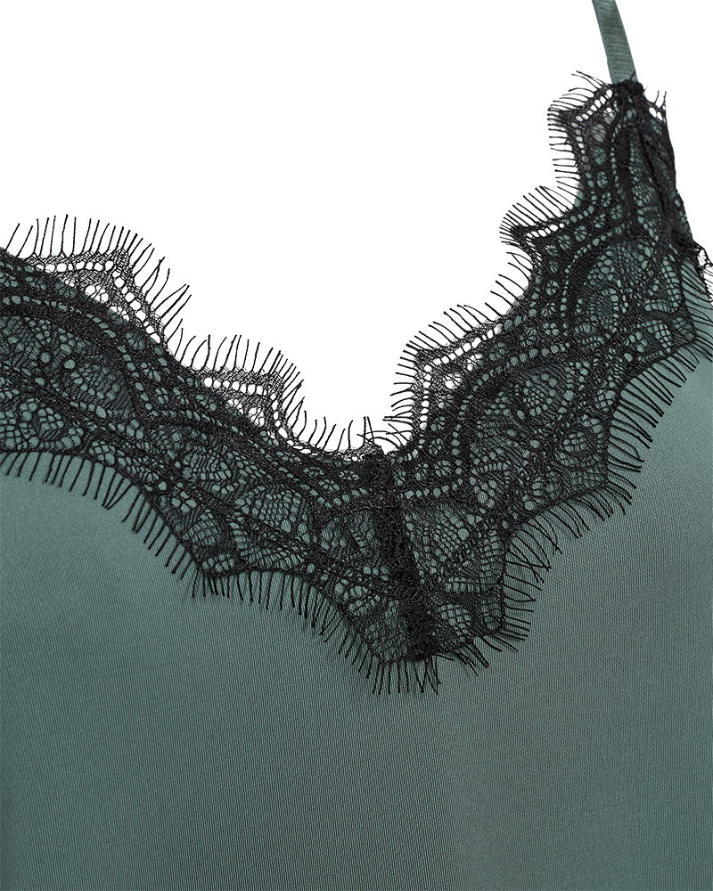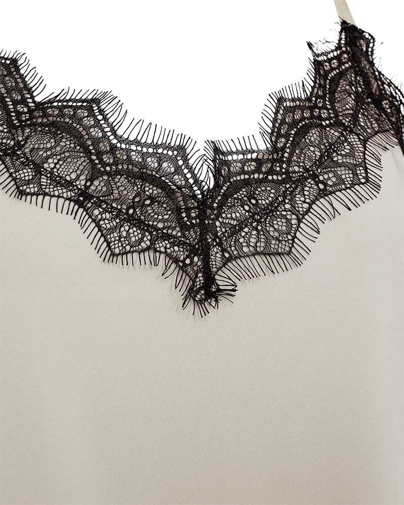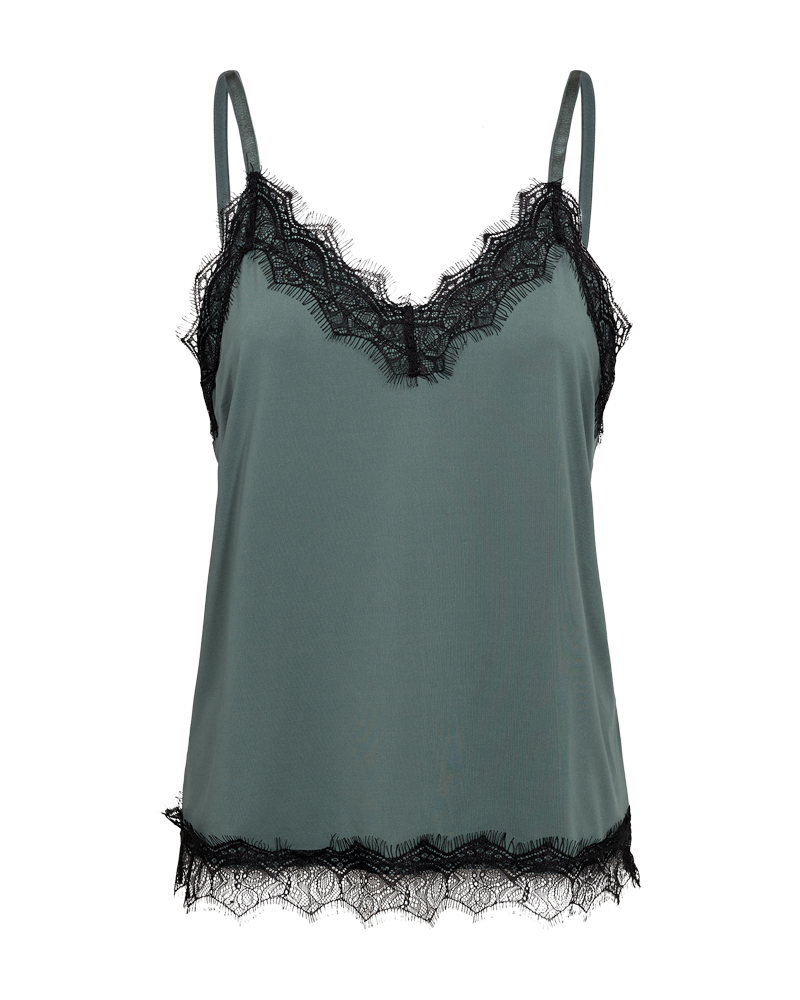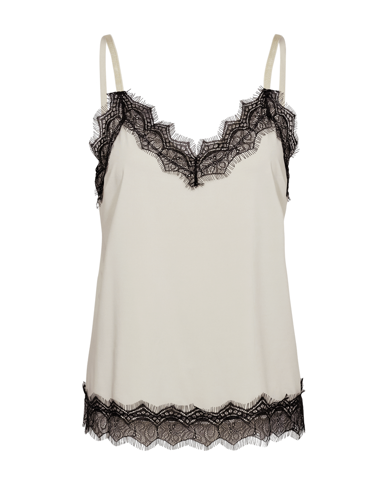 Æðislegur hlýrabolur með blúndu frá FREE/QUENT 95% polyester 5% teygja
