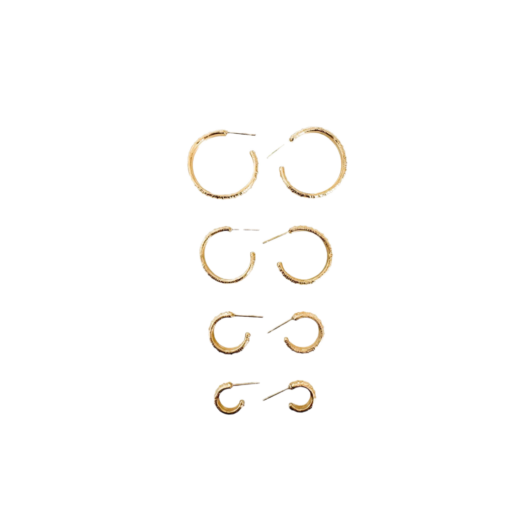 Stærðir: 10, 15, 20 og 25 mm innri hringur í þvermál.Áferð: HömruðEfni: Ryðfrítt stálEyrnalokkum fæst ekki skilað ef innsiglið er rofið. | Luna eyrnalokkar - Gull