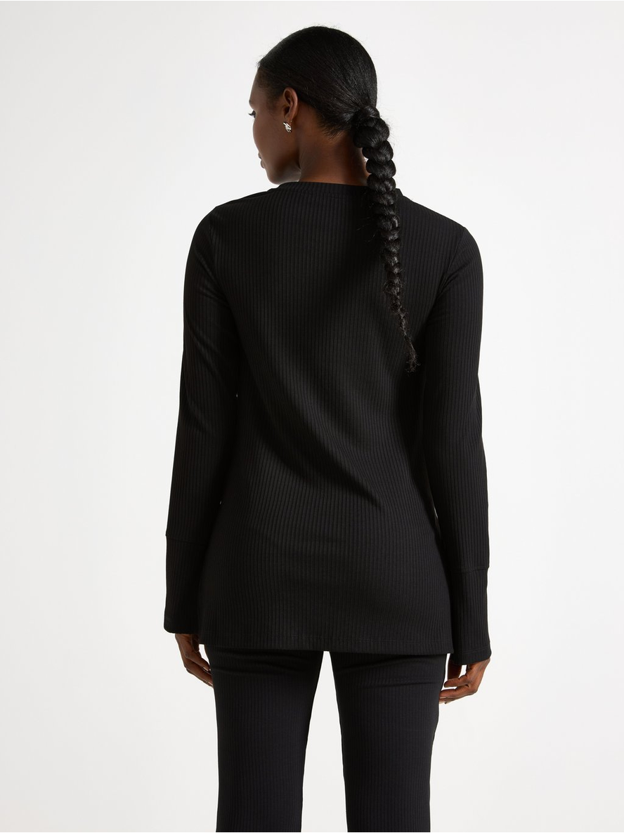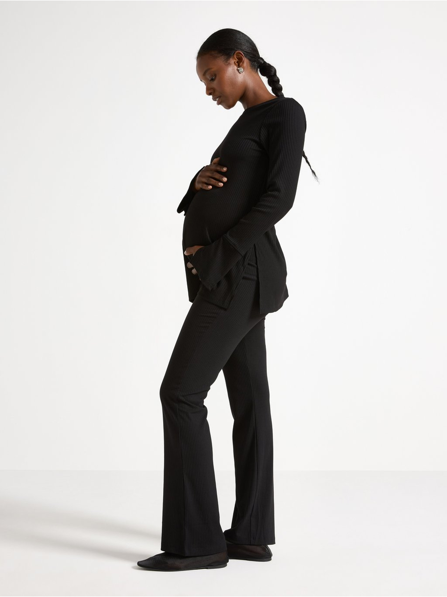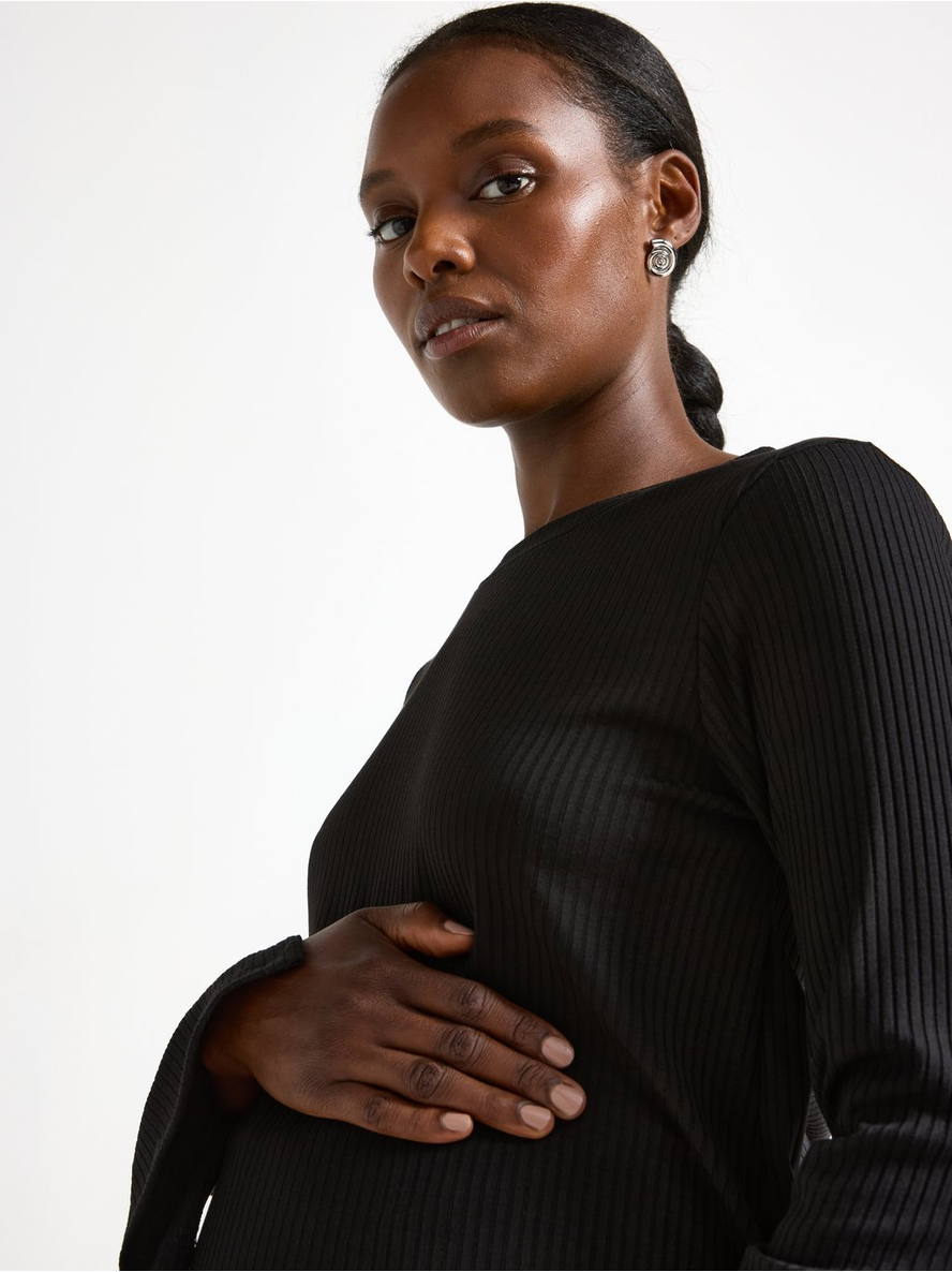 ONLINE EDITION. A sleek and soft long sleeve top with slits at both sides at bottom hem and at sleeve openings. Made in a soft, ribbed jersey with room for the growing belly. Straight fit Sjá nánar