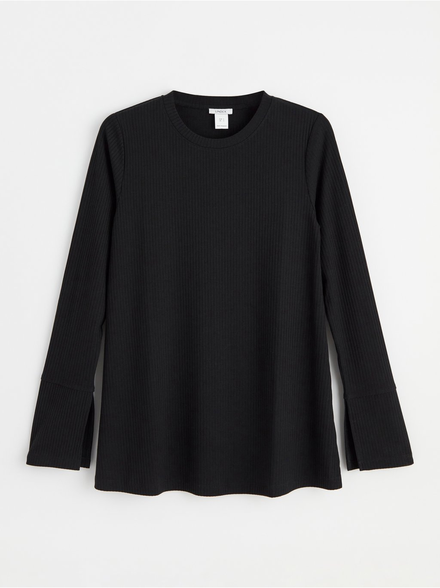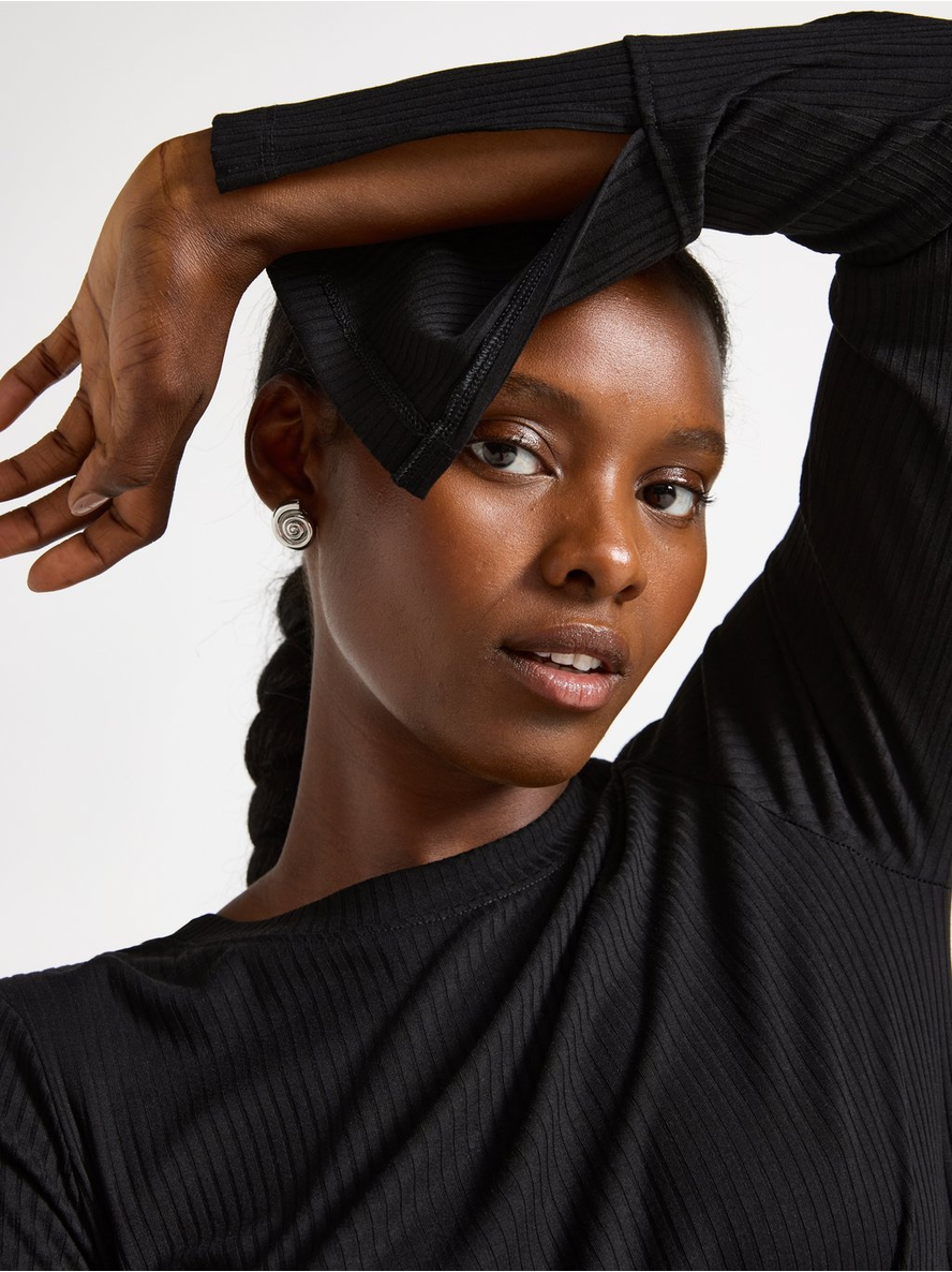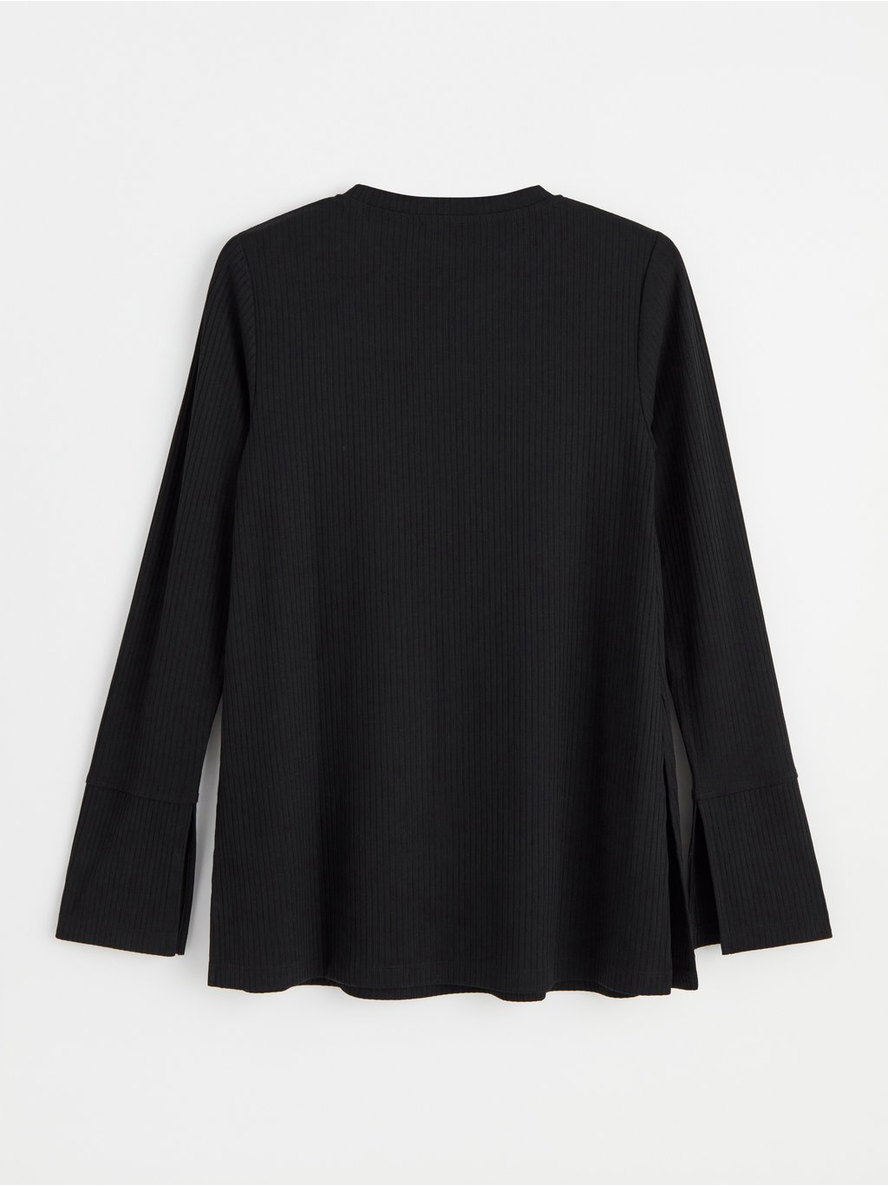 ONLINE EDITION. A sleek and soft long sleeve top with slits at both sides at bottom hem and at sleeve openings. Made in a soft, ribbed jersey with room for the growing belly. Straight fit Sjá nánar