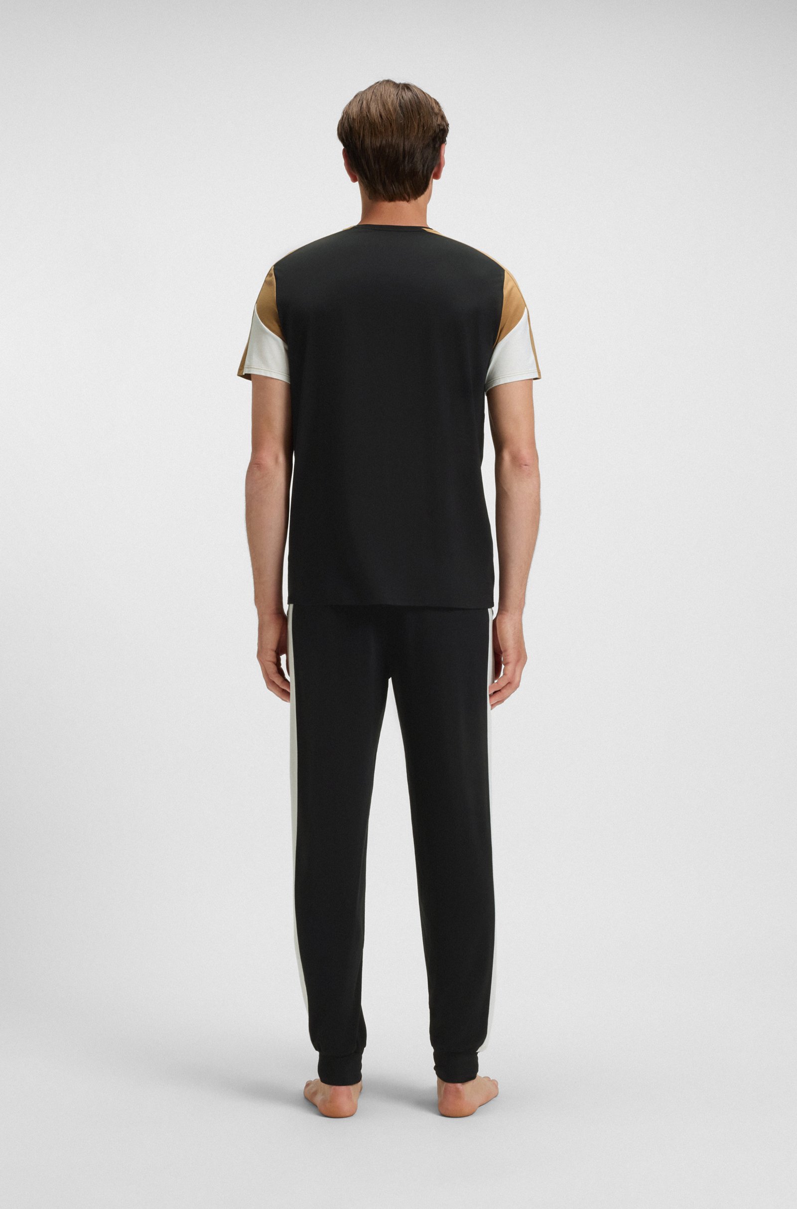 In a straight fit, this BOSS Menswear pajama T-shirt is ideal for downtime. Cotton-rich stretch blend with a logo and contrast panels. Regular fit Neckline: Crew neck 55% Cotton, 37% Modal, 8% ... Sjá nánar
