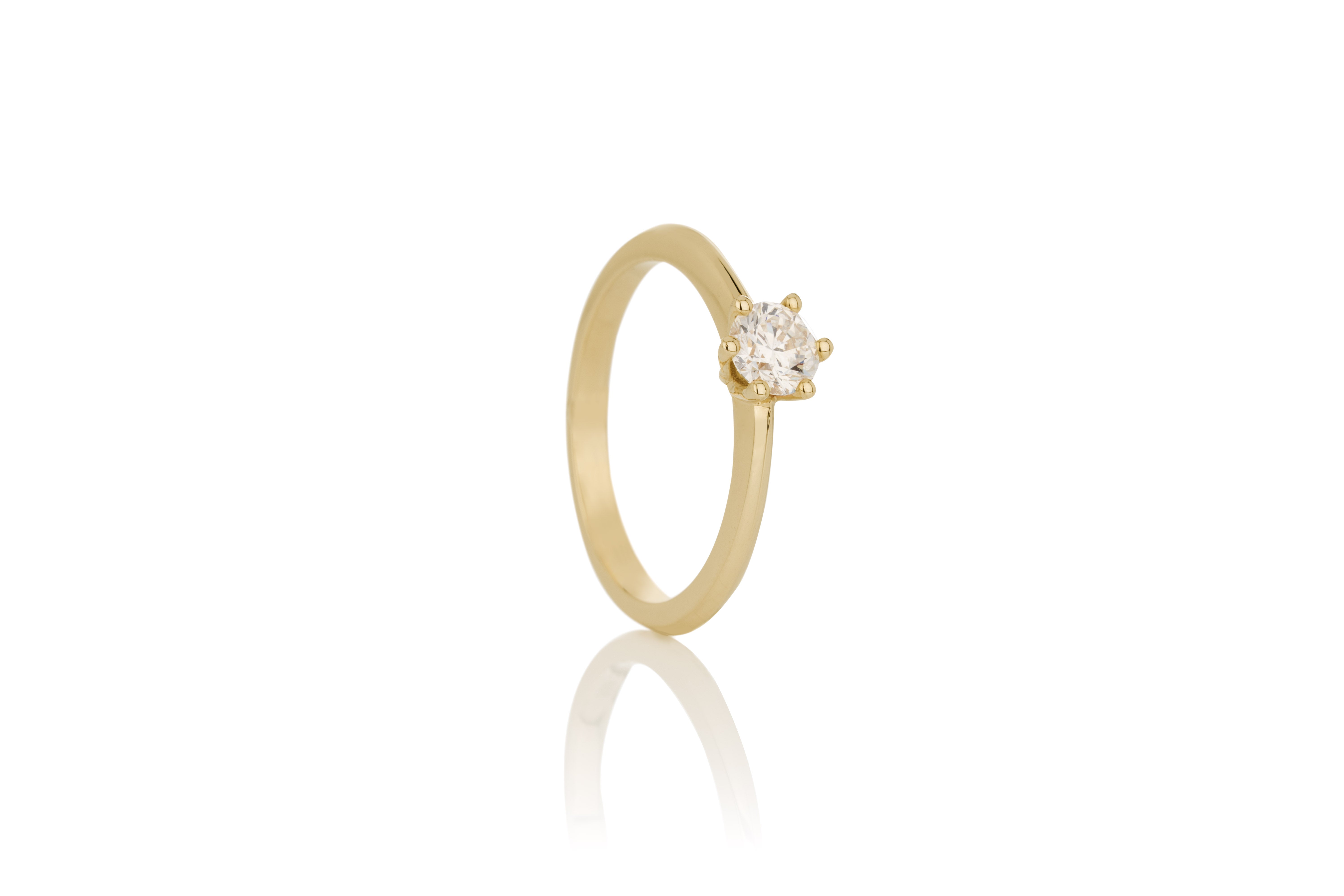 14 kt gull Demantshringur  Vr: 200-150 Fallegur og klassískur demantshringur með 6 klóm.  Efni: Gull Karöt: 14 Yfirborð: Pólerað   Steinn: Demantur Fjöldi steina: 1 ... Sjá nánar