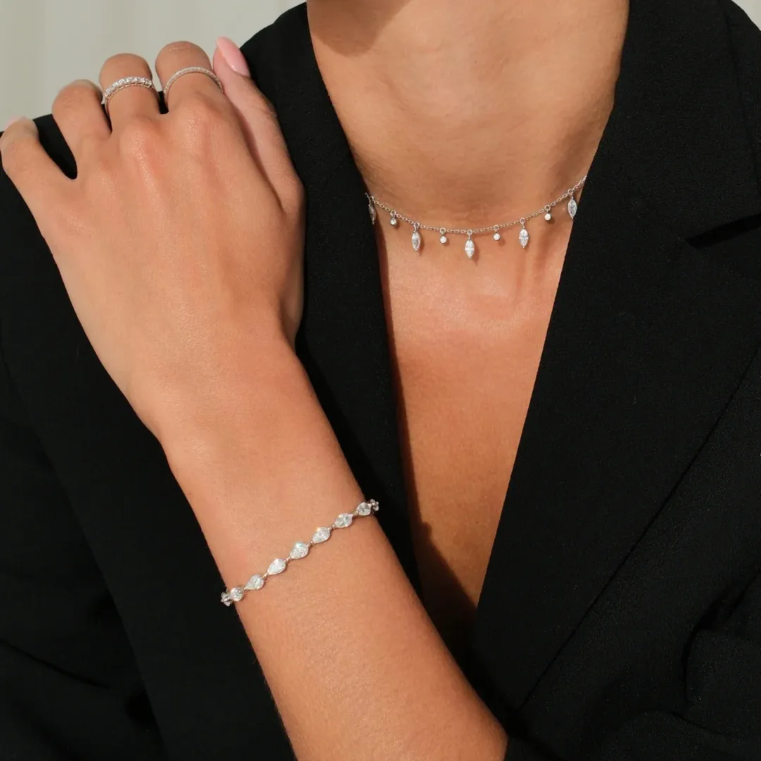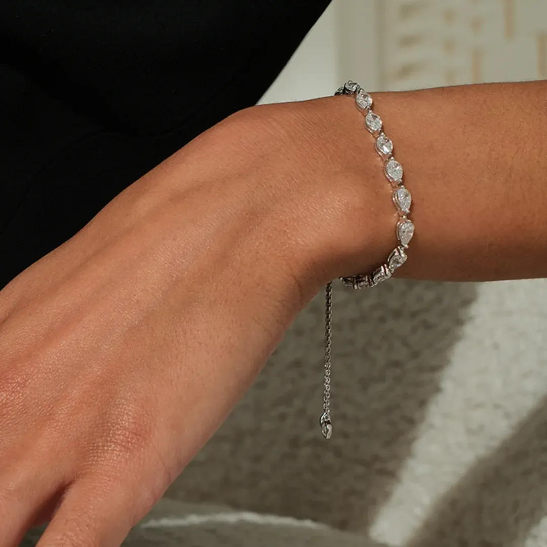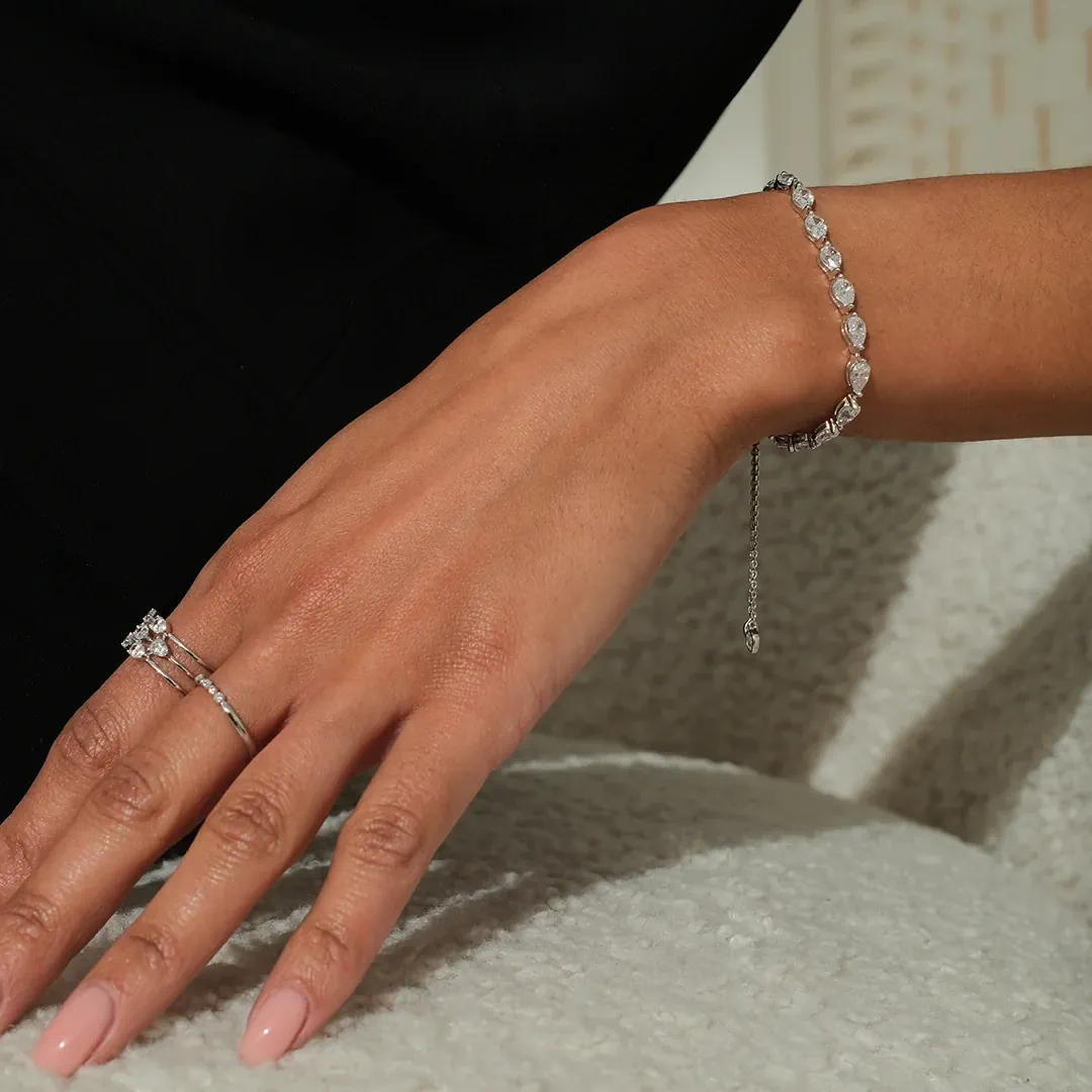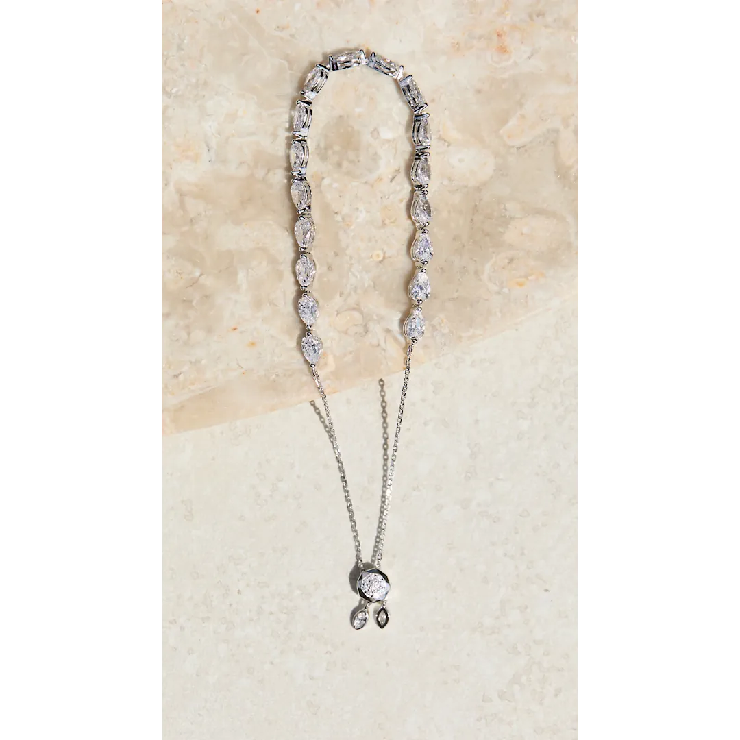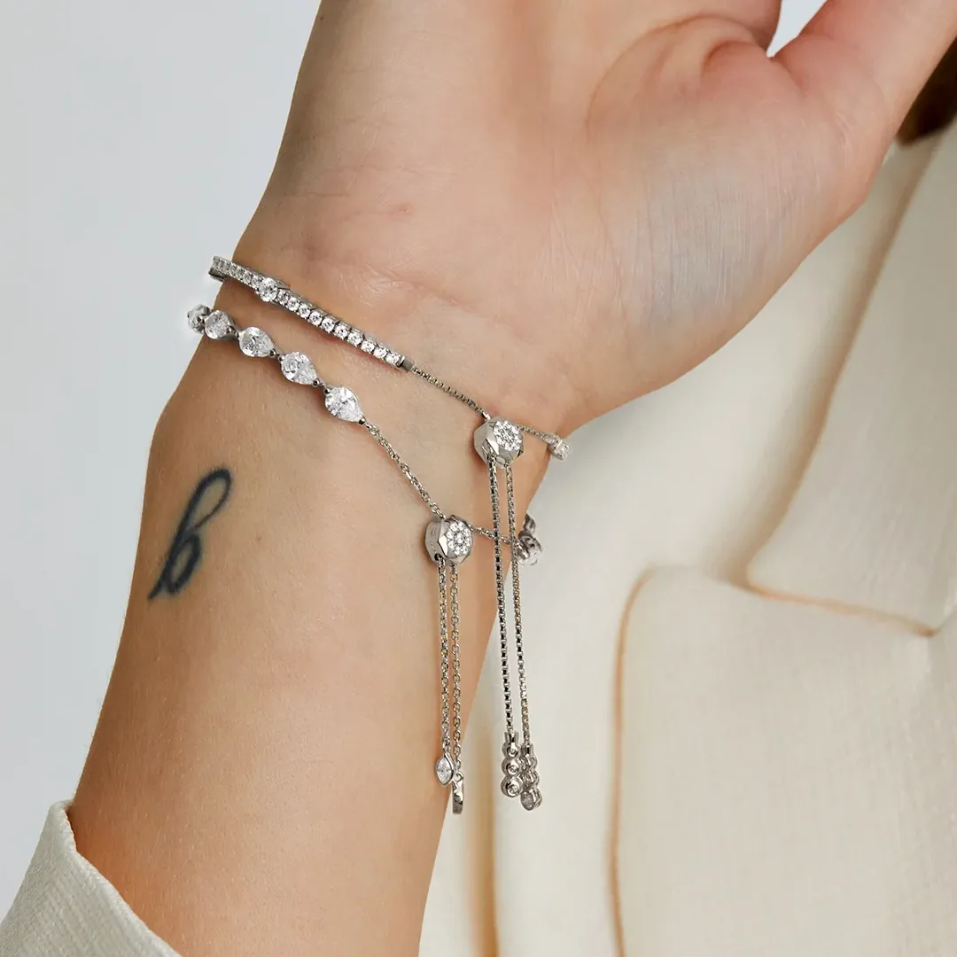 Efni armbands: Rhodiumhúðað silfur & zirkonia Stillanleg lengd með fallegri rennilæsingu, sem er hluti af útlitinu.