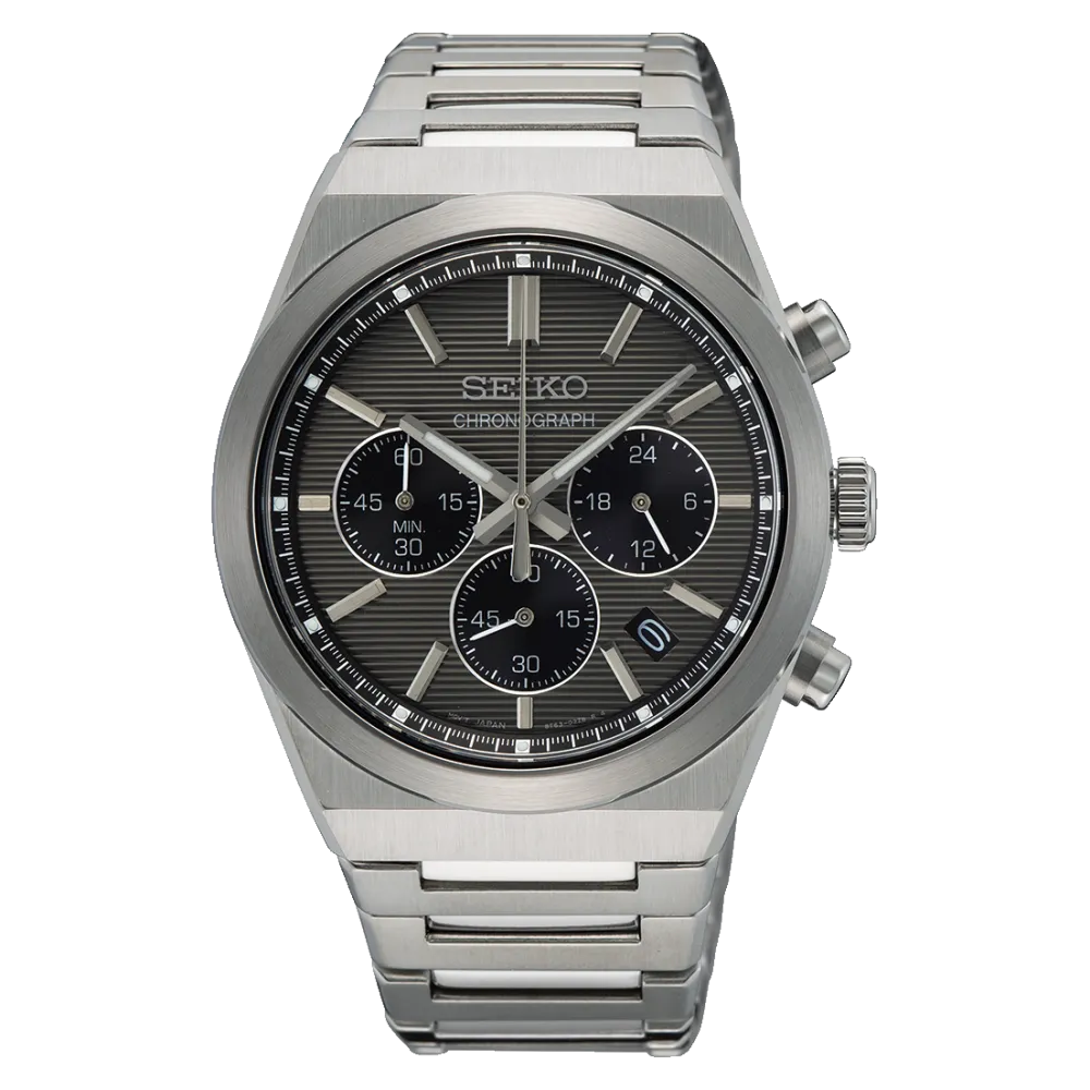 Úrkassi: 40mm – stál Úrverk: Rafhlaða – skeiðklukka Vatnsvörn: 100M Skífa: Grá & svört – vísar Gler: Rispufrítt safírgler Keðja: Stál Ábyrgð: Þriggja ára