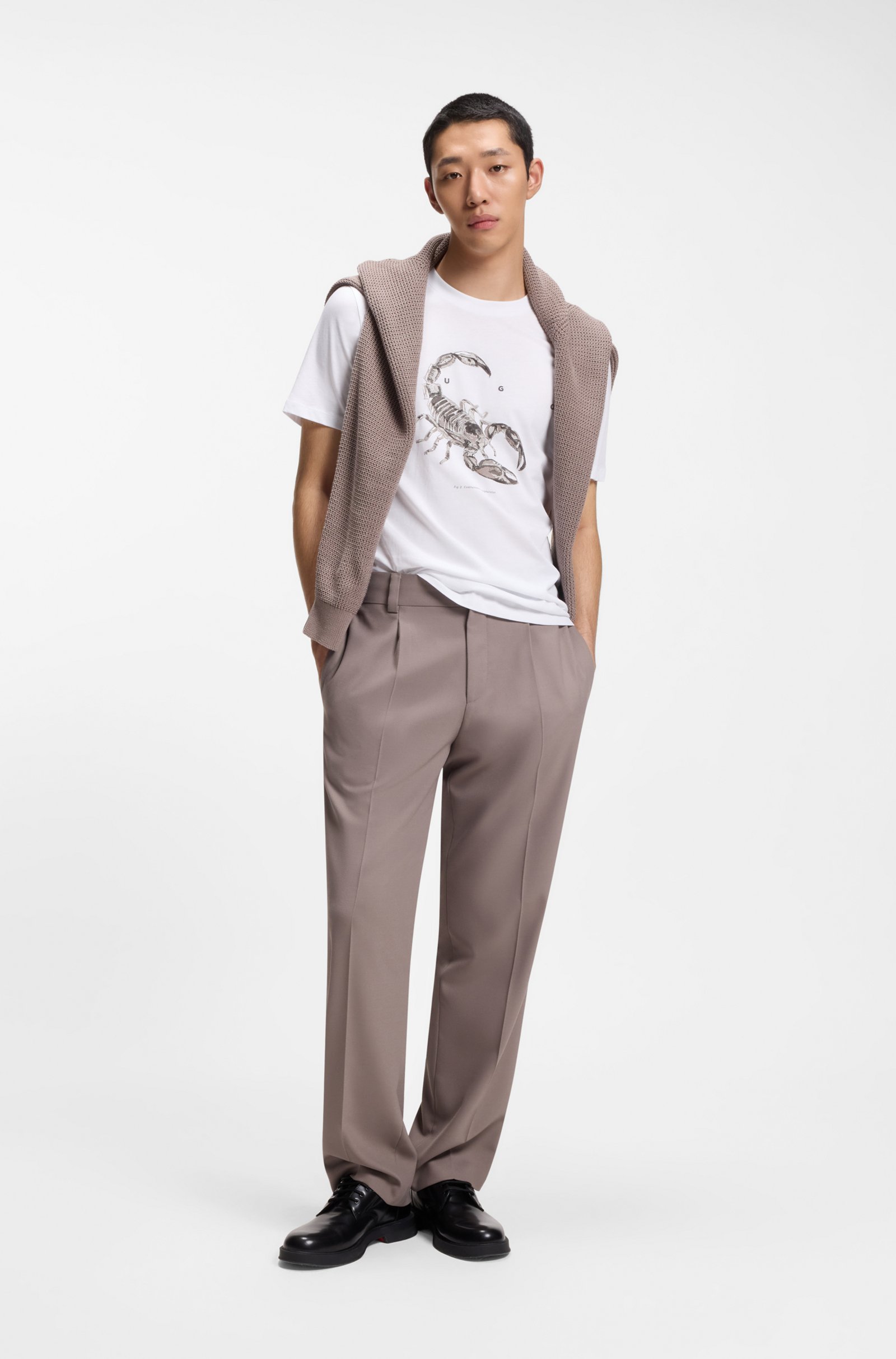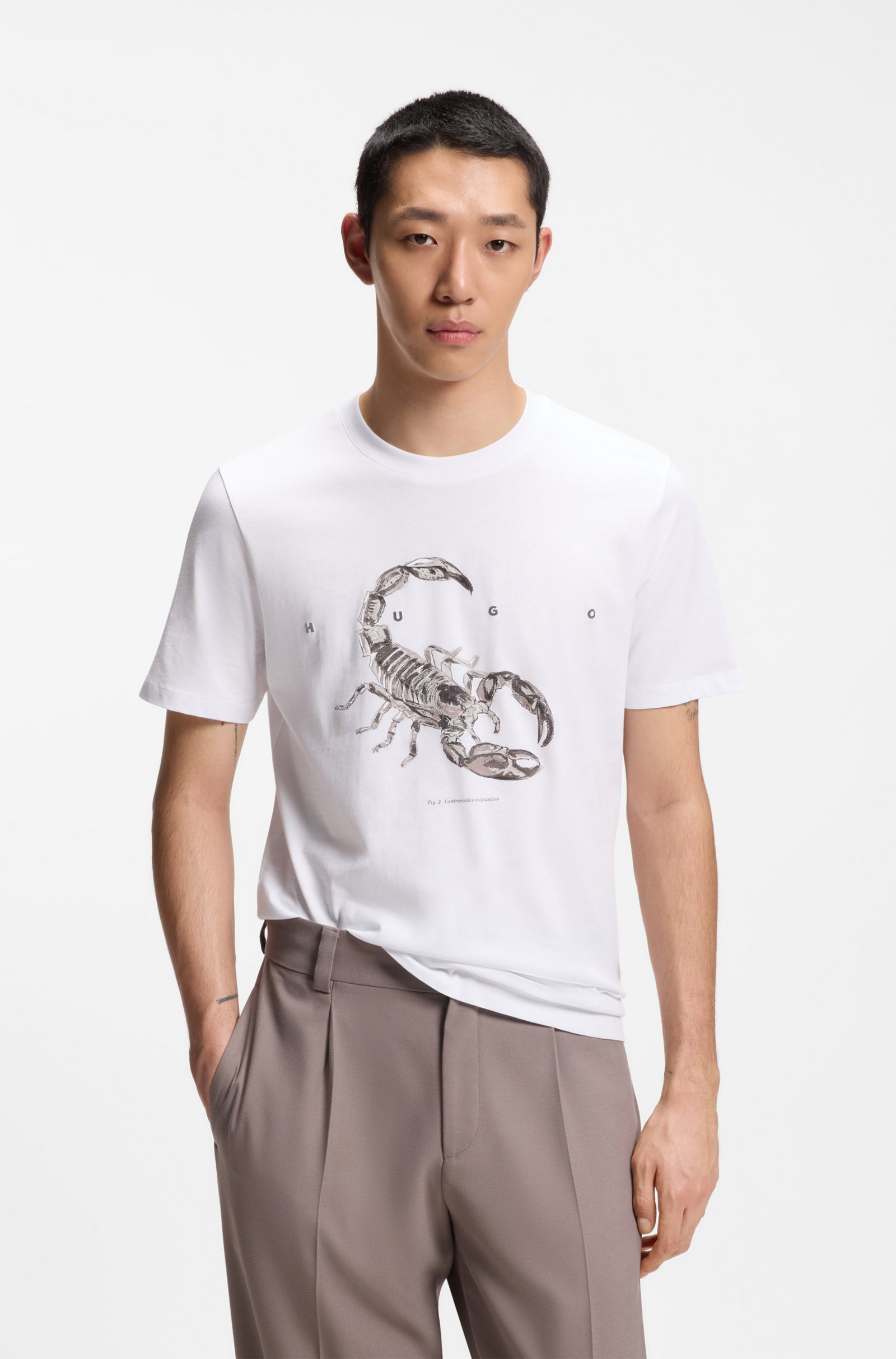 Energise a casual outfit with the spaced-out logo and statement artwork of this regular-fit HUGO Menswear T-shirt. Crafted in breathable cotton. Regular fit Crew neck Short sleeves Standard ... Sjá nánar