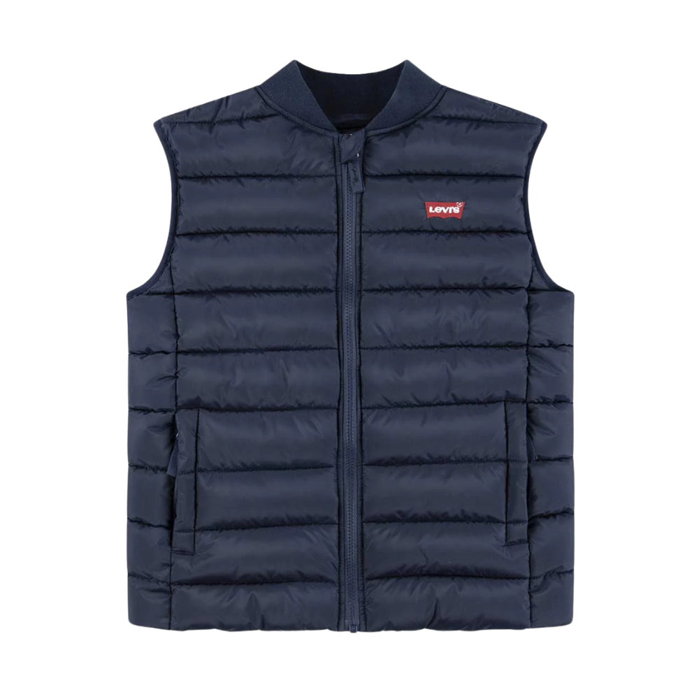 Dökk blátt, rennt vesti frá Levi´s með tveimur renndum vösum að framan. 100% polyester.