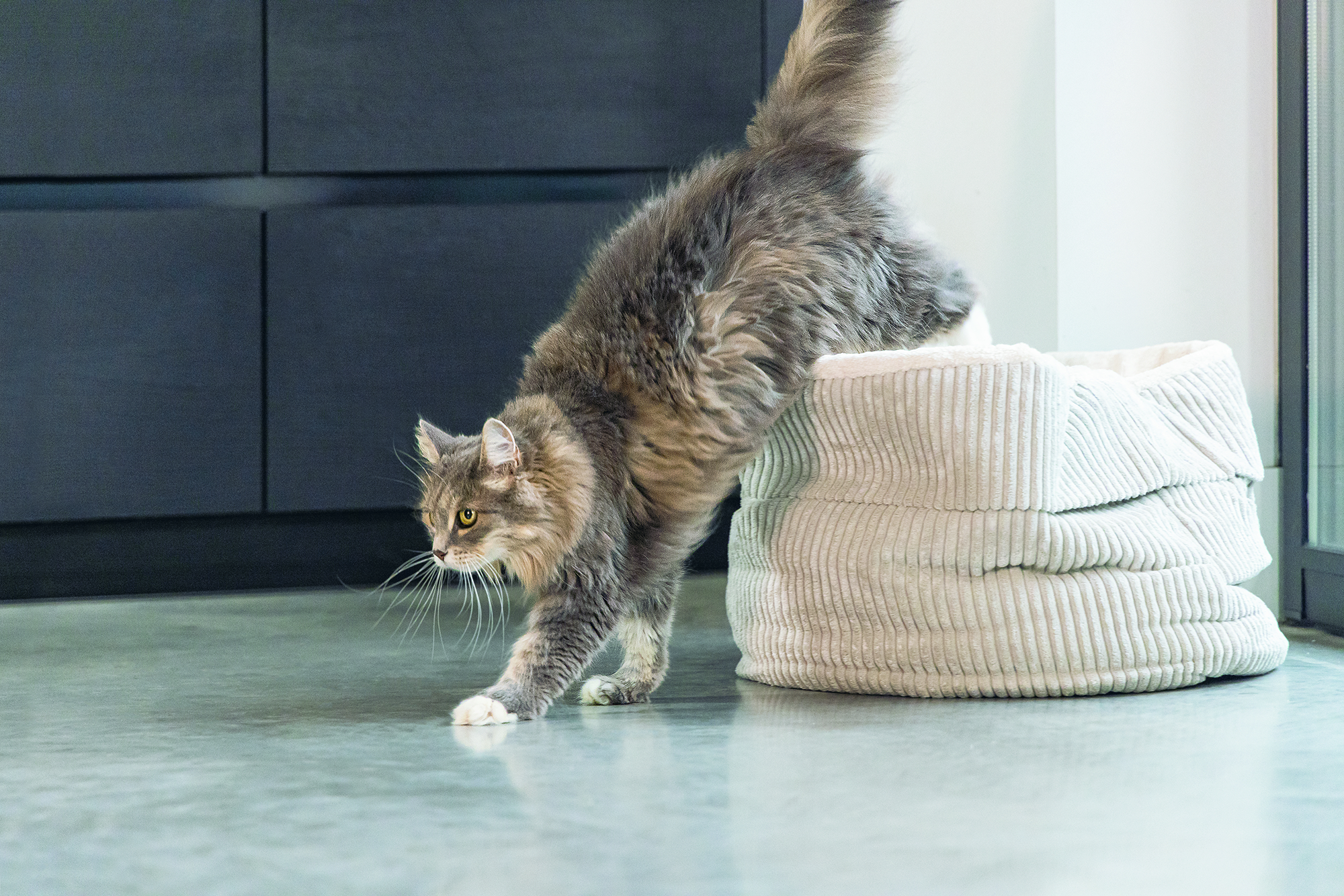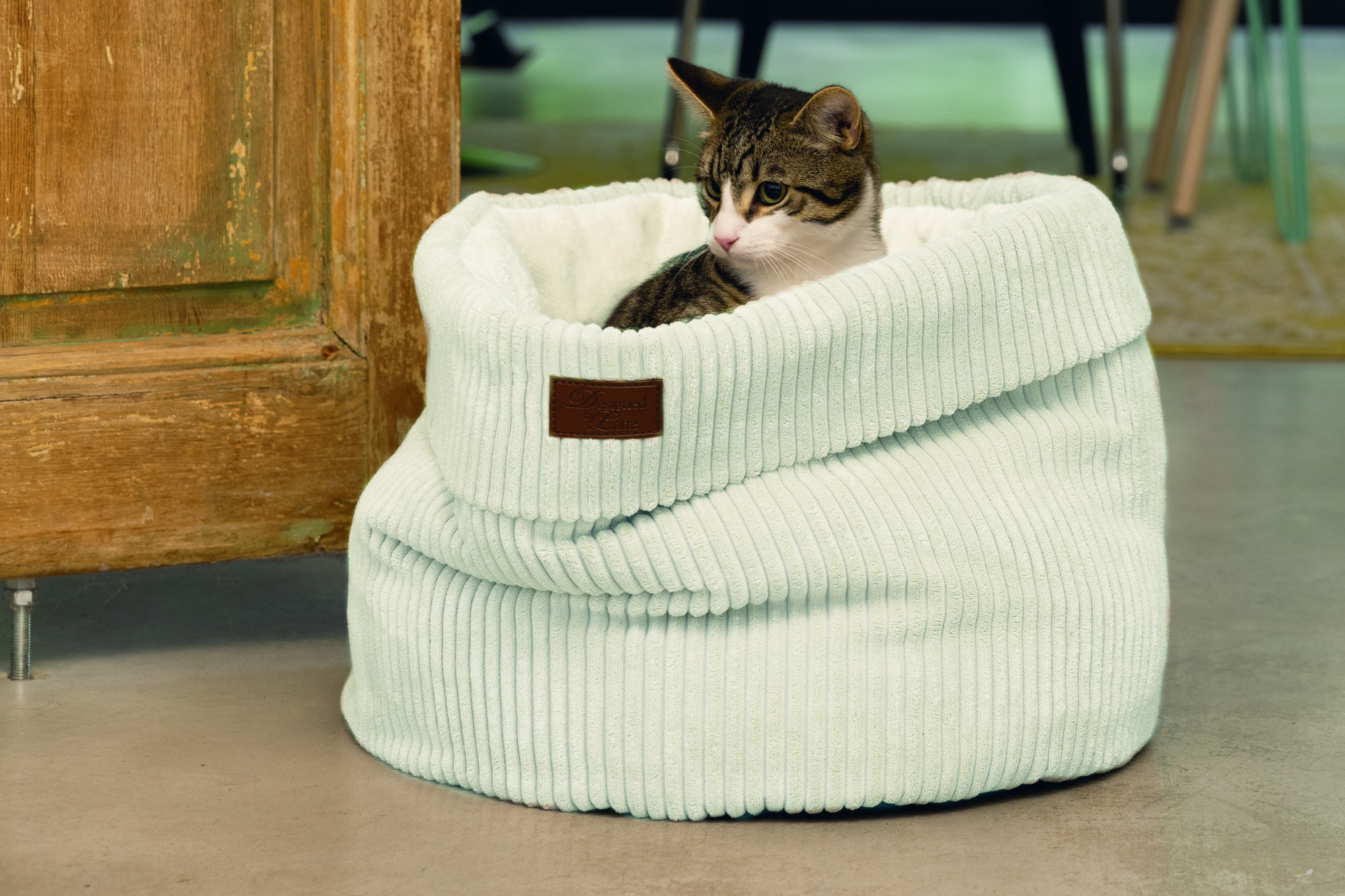 Cat Basket Ribbed Ljós Grá 50X50X35