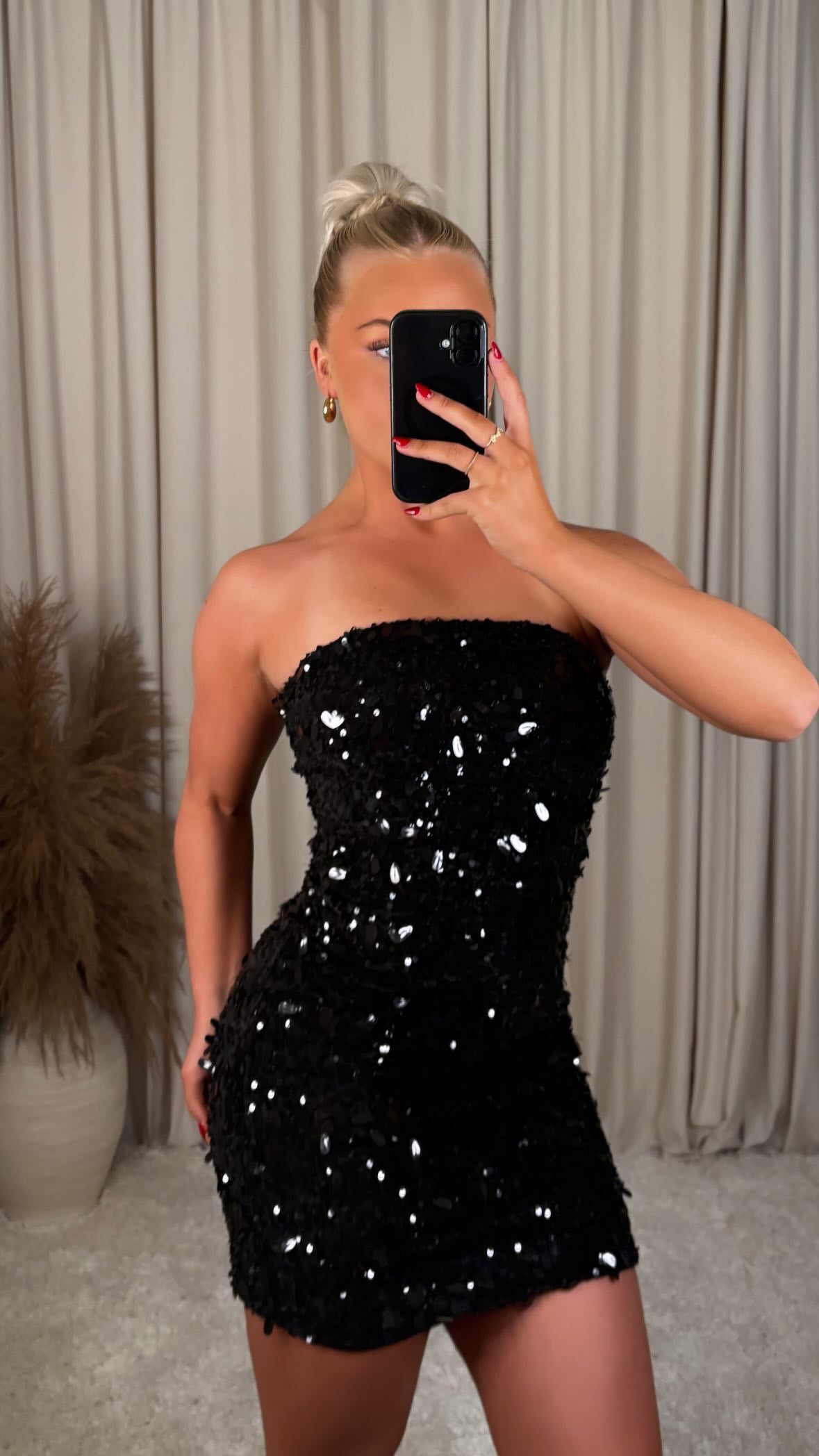 Æðislega fallegur palliettu kjóll úr mjög þæginlegu efni, það er smá teygja í efninu og er með rennilás að aftan  modelið er 168cm og er í stærð S
