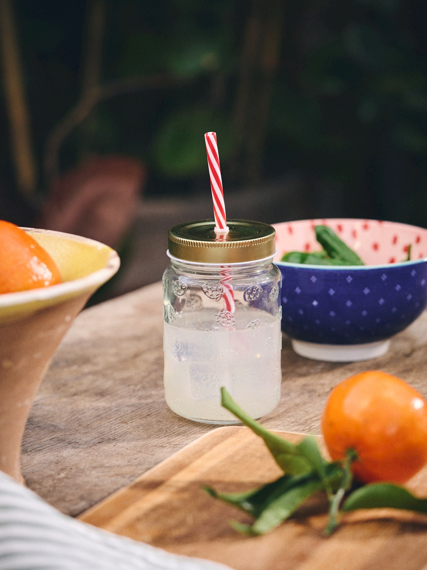 Set a lovely table "Enjoy refreshing drinks with a touch of charm," Anna says, admiring the glass with a straw. "And the lid helps prevent spills during outdoor gatherings," Clara adds.