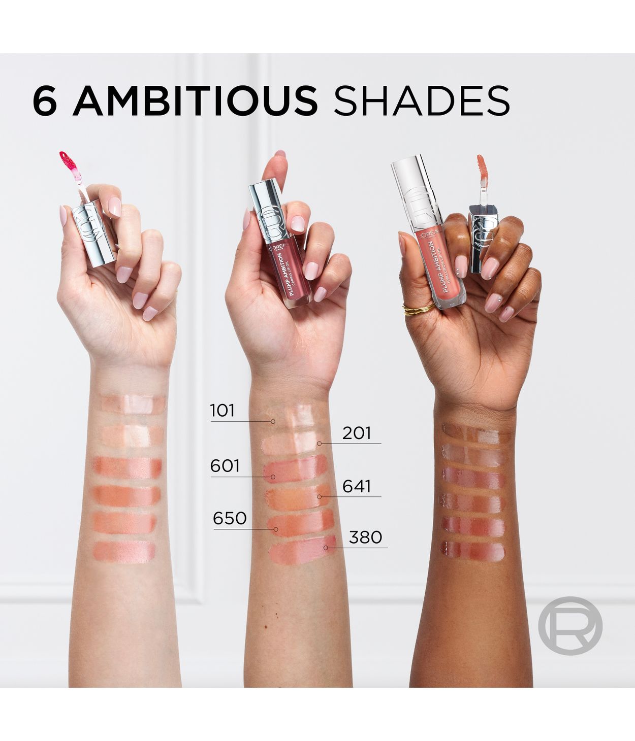 Plump Ambition Hyaluron Lip Oil er 24 tíma rakagefandi varaolía, með hýalúrónsýru, sem gefur volumizing-glans og gerir varirnar sýnilega fyllri með einni stroku.