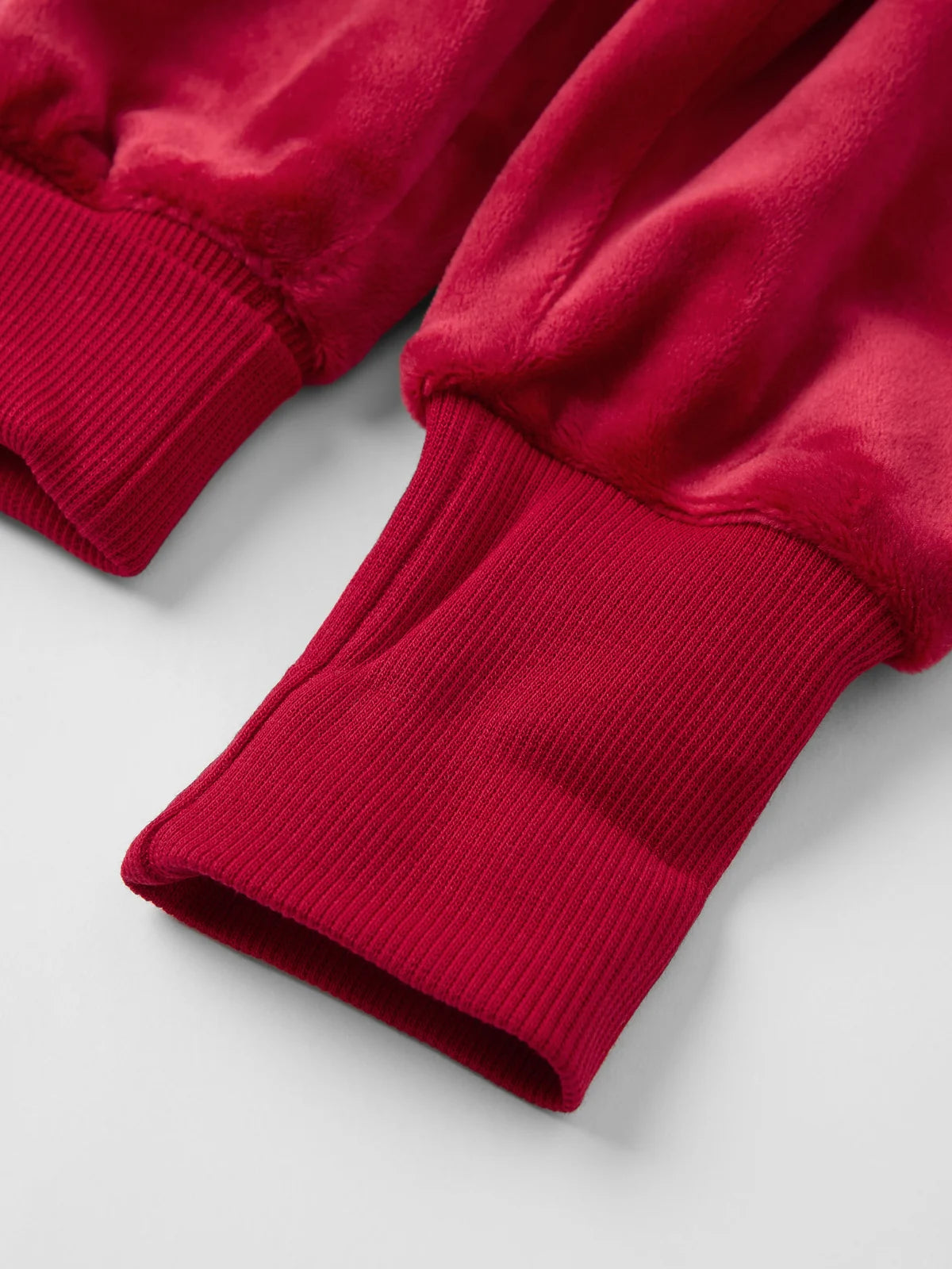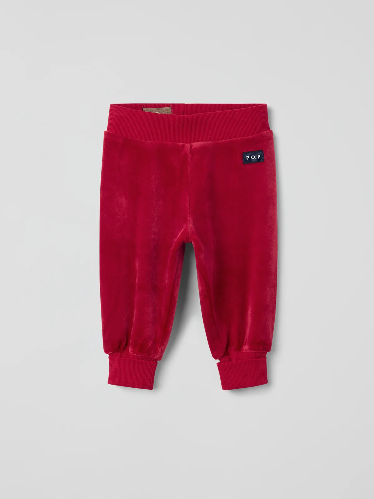 Cosy and play-friendly Soft velour with extra long cuffs Soft and cosy velour trousers made from recycled polyester – perfect for small, growing legs. The trousers have an elastic waist that ... Sjá nánar