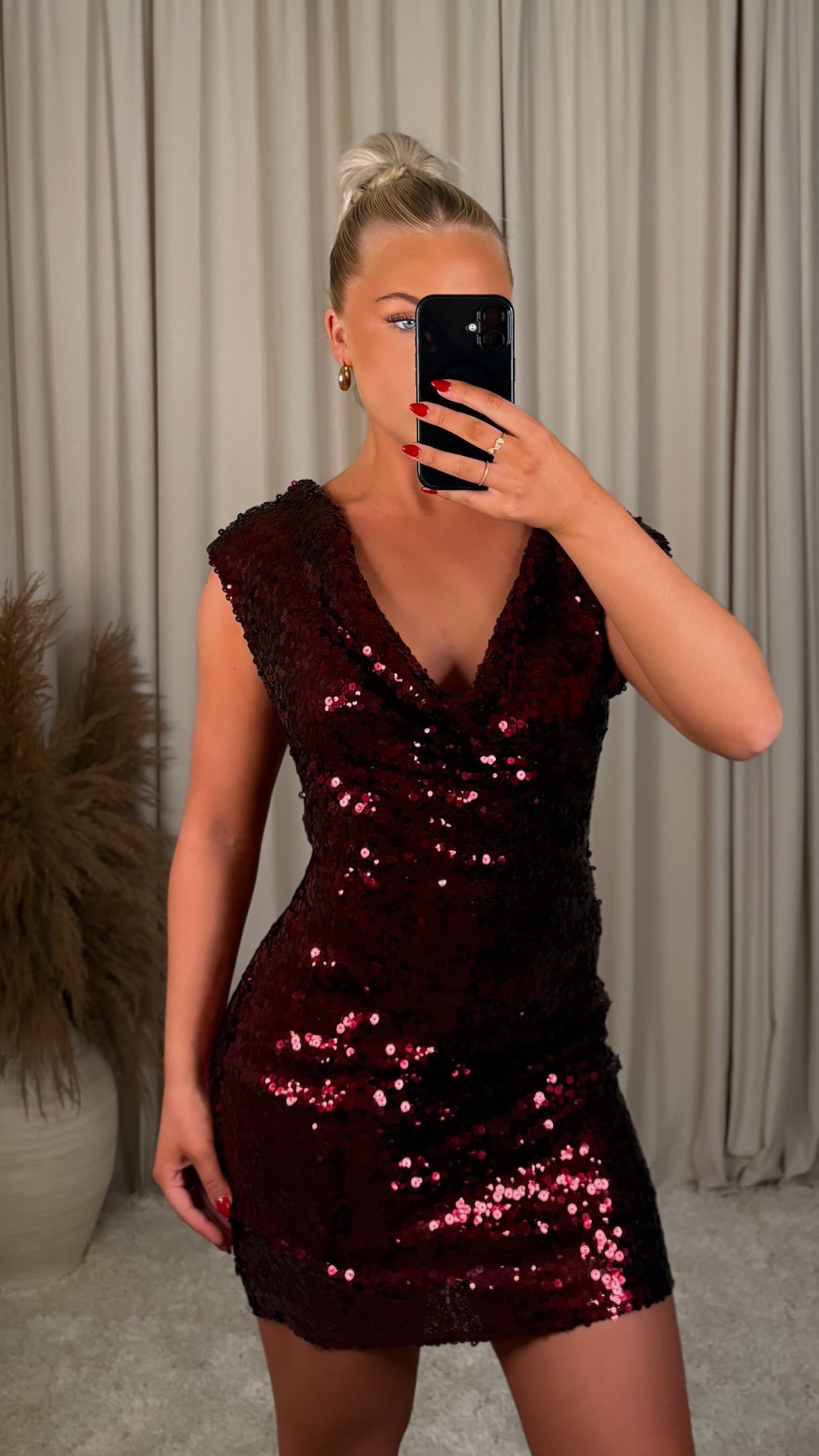 Æðislega flottur pallíettu kjóll úr mjög þæginlegu efni, það er engin teygja í efninu og er með rennilás að aftan  modelið er 168cm og er í stærð S