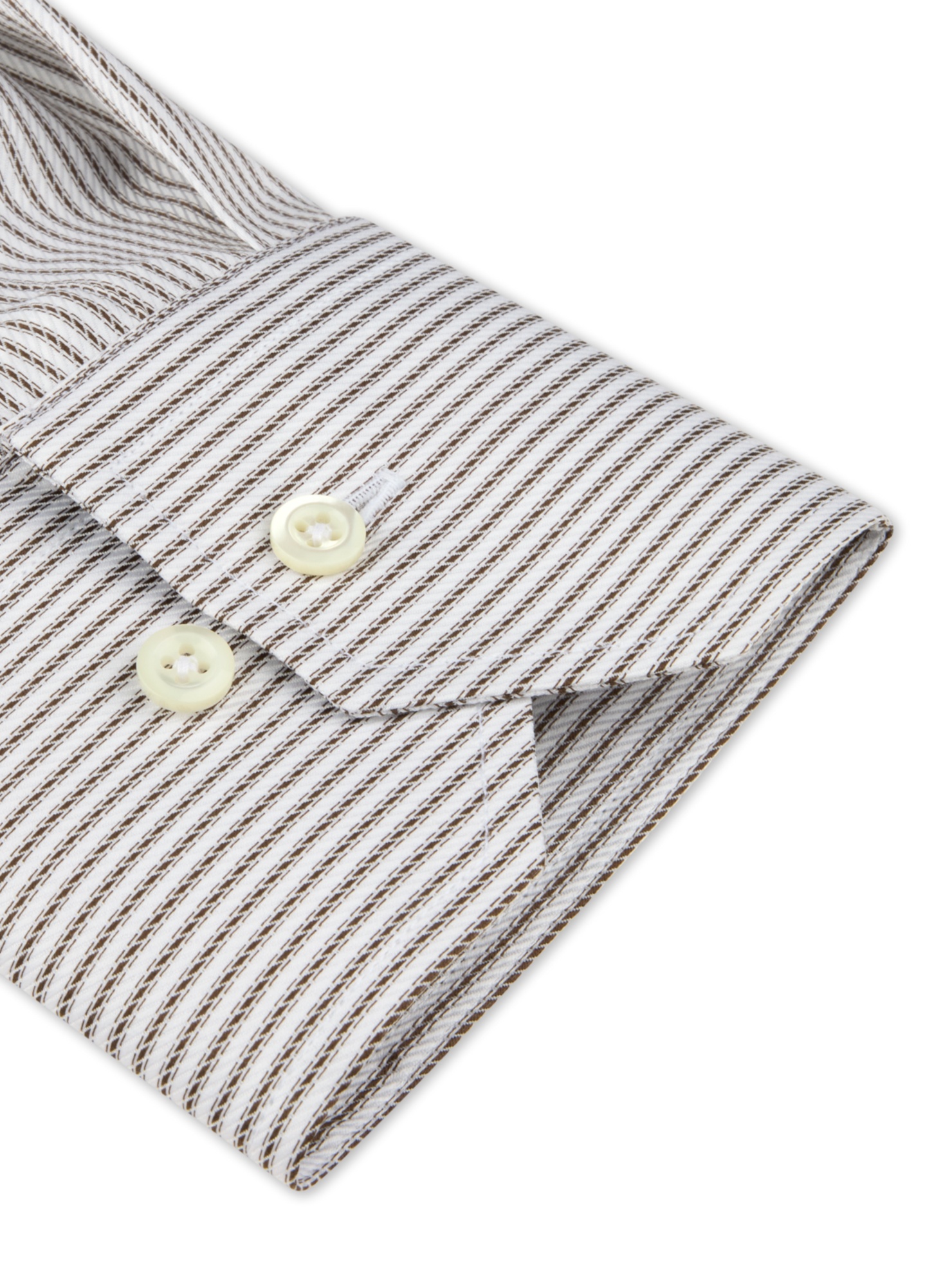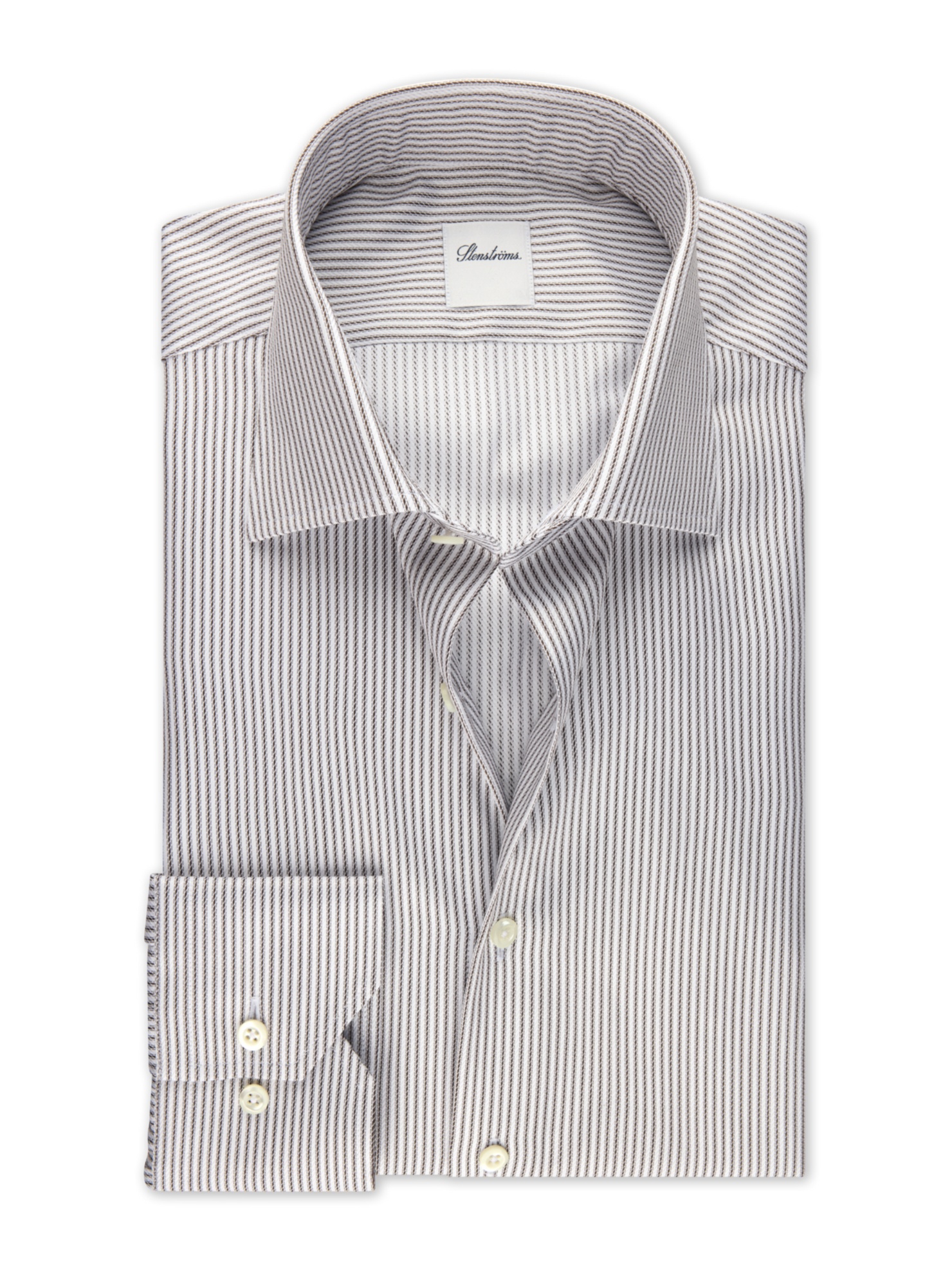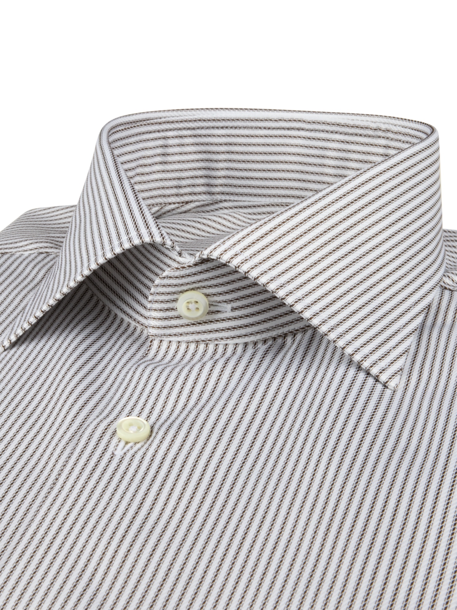 This striped twill shirt is made of twofold cotton. The shirt is detailed with mother of pearl buttons, single cuffs and a cut away collar. Moderate cut away collar, No. 77 Single Cuff Striped ... Sjá nánar