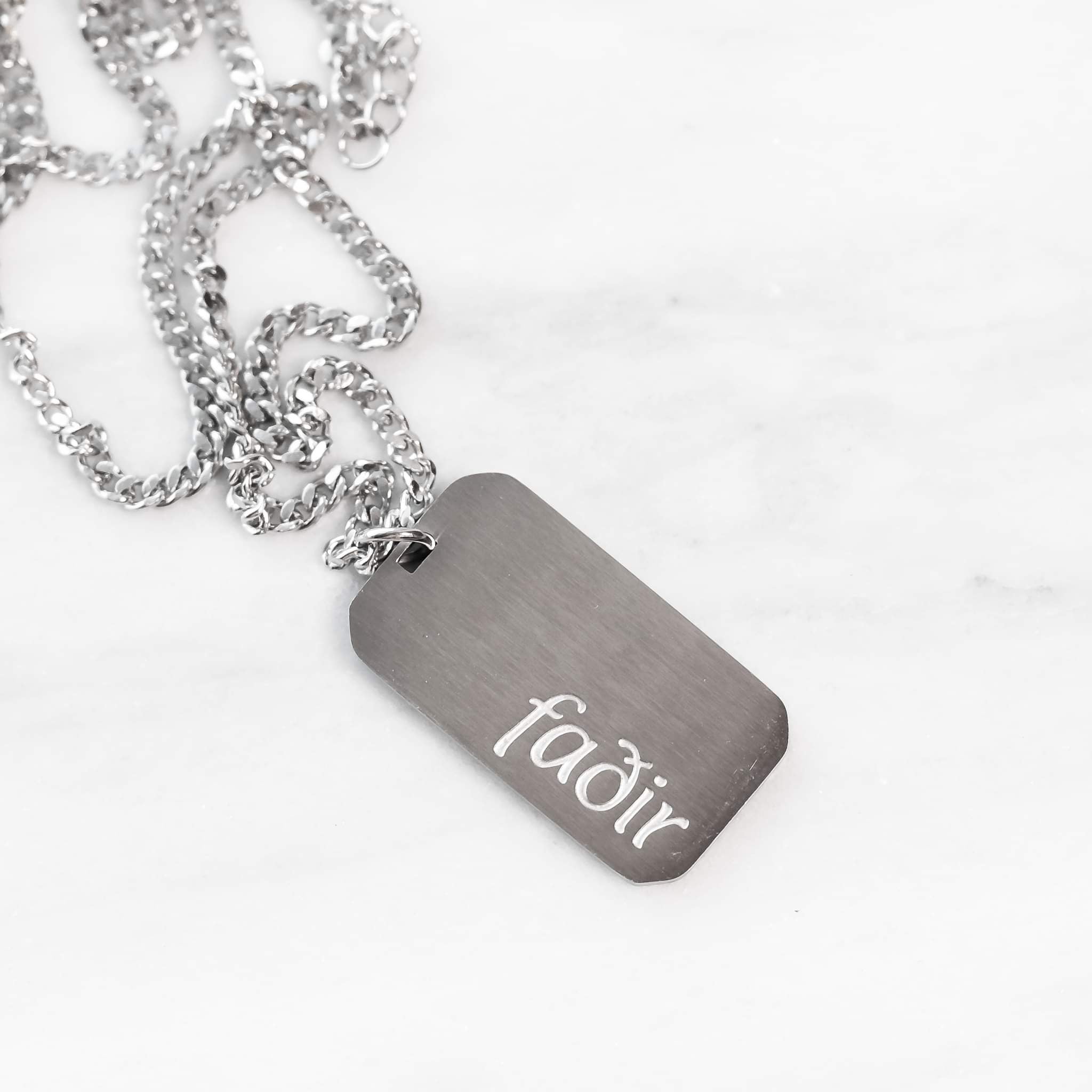 Ein plata með tveimur áletrunum en sama merking.  Pabbi á einni hlið og faðir á hinni hliðinni Keðja og plata úr ryðfríu stáli.  Platan er mött.   keðja 60cm.  Plata 3.1x1.8