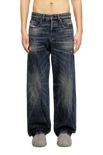 Flottar loose fit gallabuxur í þægilegu sniði frá Diesel, lágar í mittið. 'Distressed' útlit einkennir buxurnar