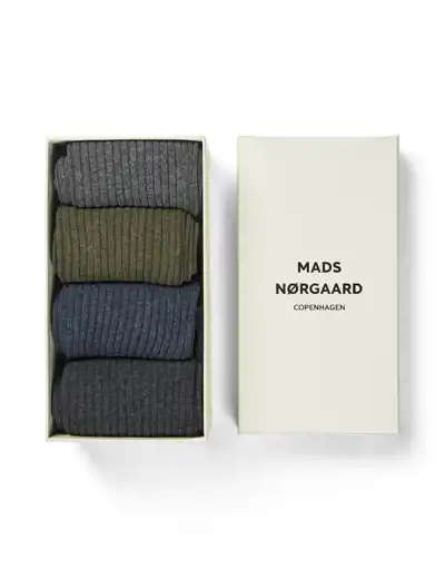 Sokkabox með fjórum sokkum frá Mads Nørgaard. Fjölhæfir sokkar sem henta við öll tilefni.