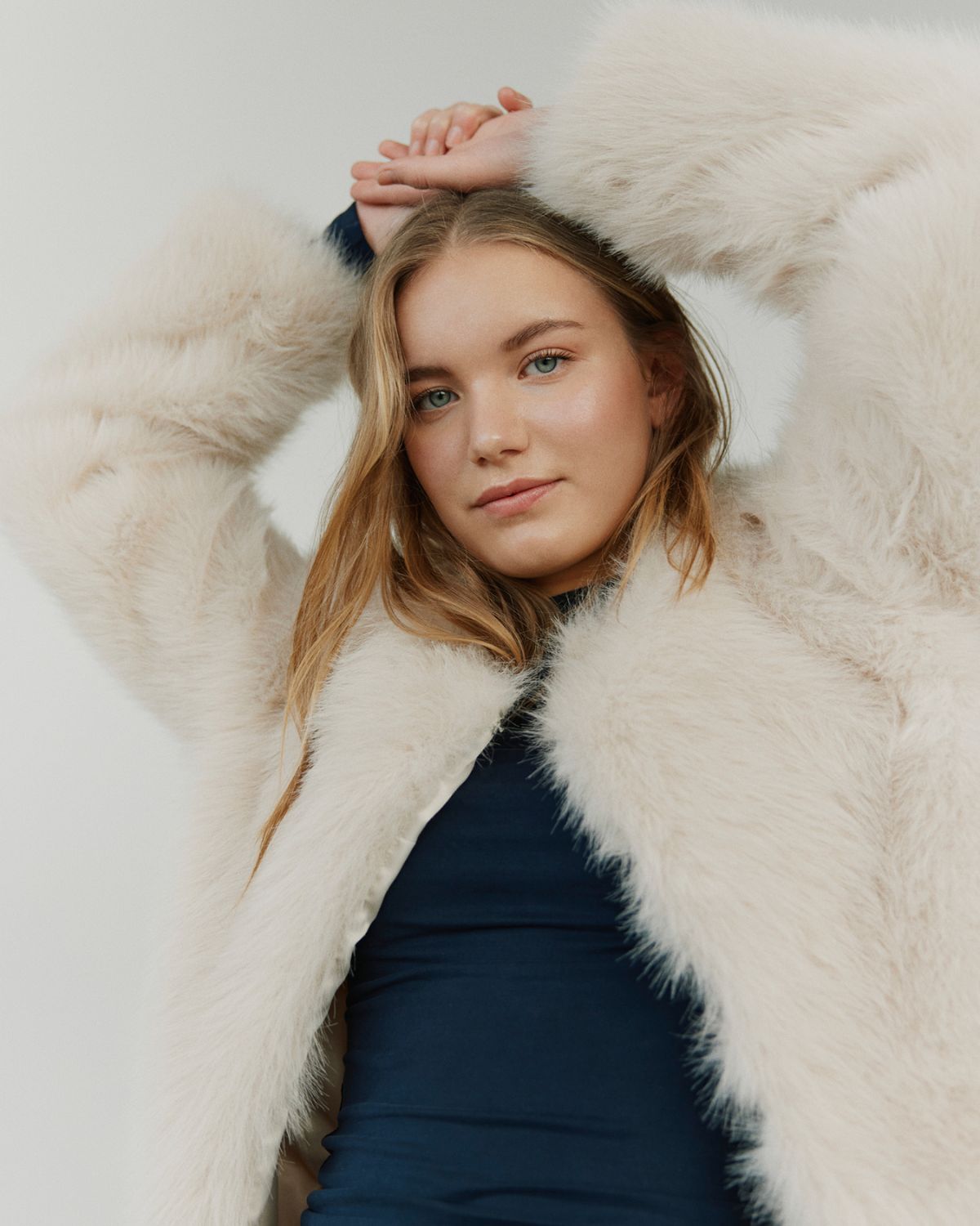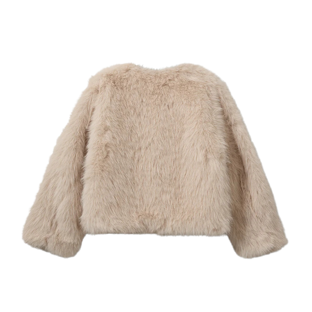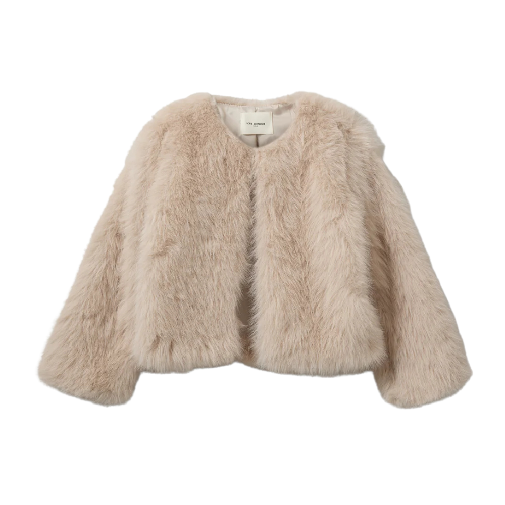 Ljós loð jakki frá Sofie Schnoor. 100% polyester.