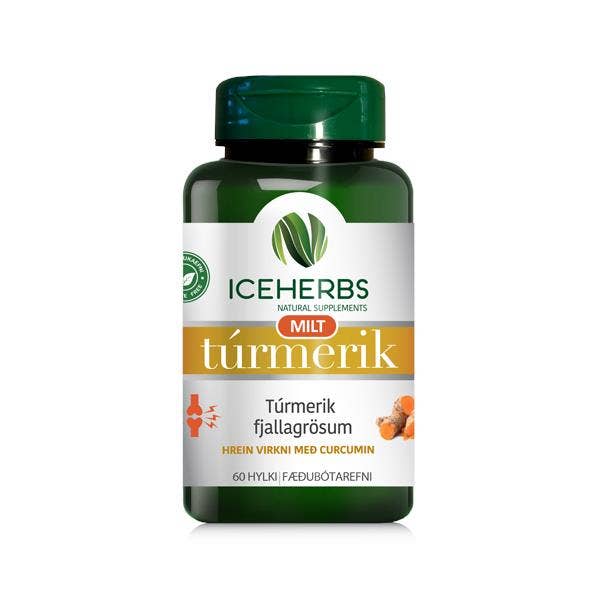 Túrmerik blanda með íslenskum fjallagrösum fyrir liði, bólgur og meltingu.