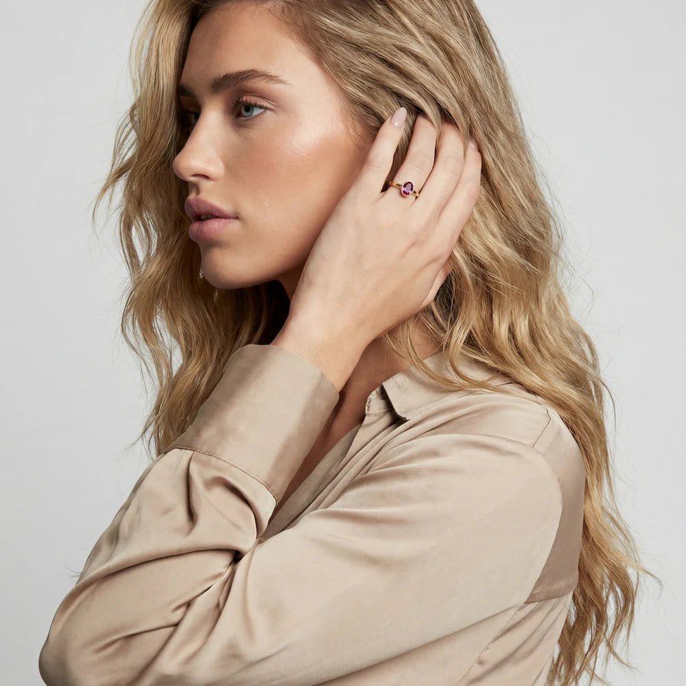 Hringur - Sif Jakobs SARDINIEN OVALE SJ-R2795-PKCZ-YG Fallegur hringur með Ovölum zirkon stein úr línunni Sardinien.  Gullhúðað silfur Dökk bleikur zirkon  Stærðir: 50-60 ... Sjá nánar