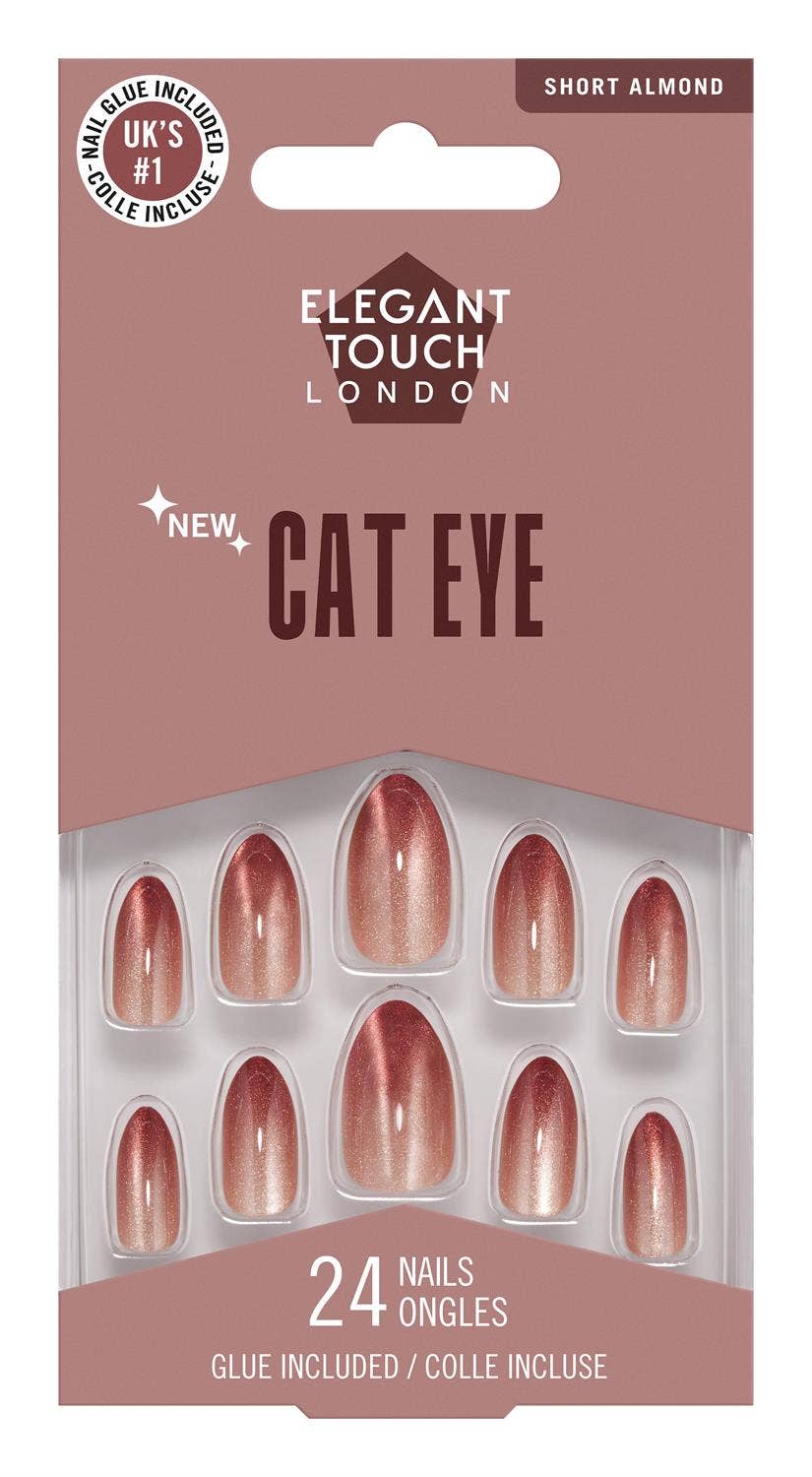Glittering Chestnut neglurnar sameina djúpan brúnan lit og heillandi cat-eye glampa. Stutt möndlulaga form með glansandi yfirlakki, salon-glam á augabragði.