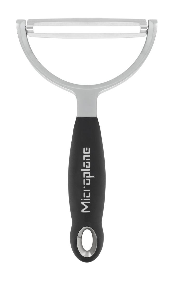 Fallegur Y skrælari úr professional línunni frá Microplane. Skrælarinn er extra stór en hausinn á honum er 10.5cm að breidd. Skrælarinn er úr ryðfríu stáli með mjúku handfangi.