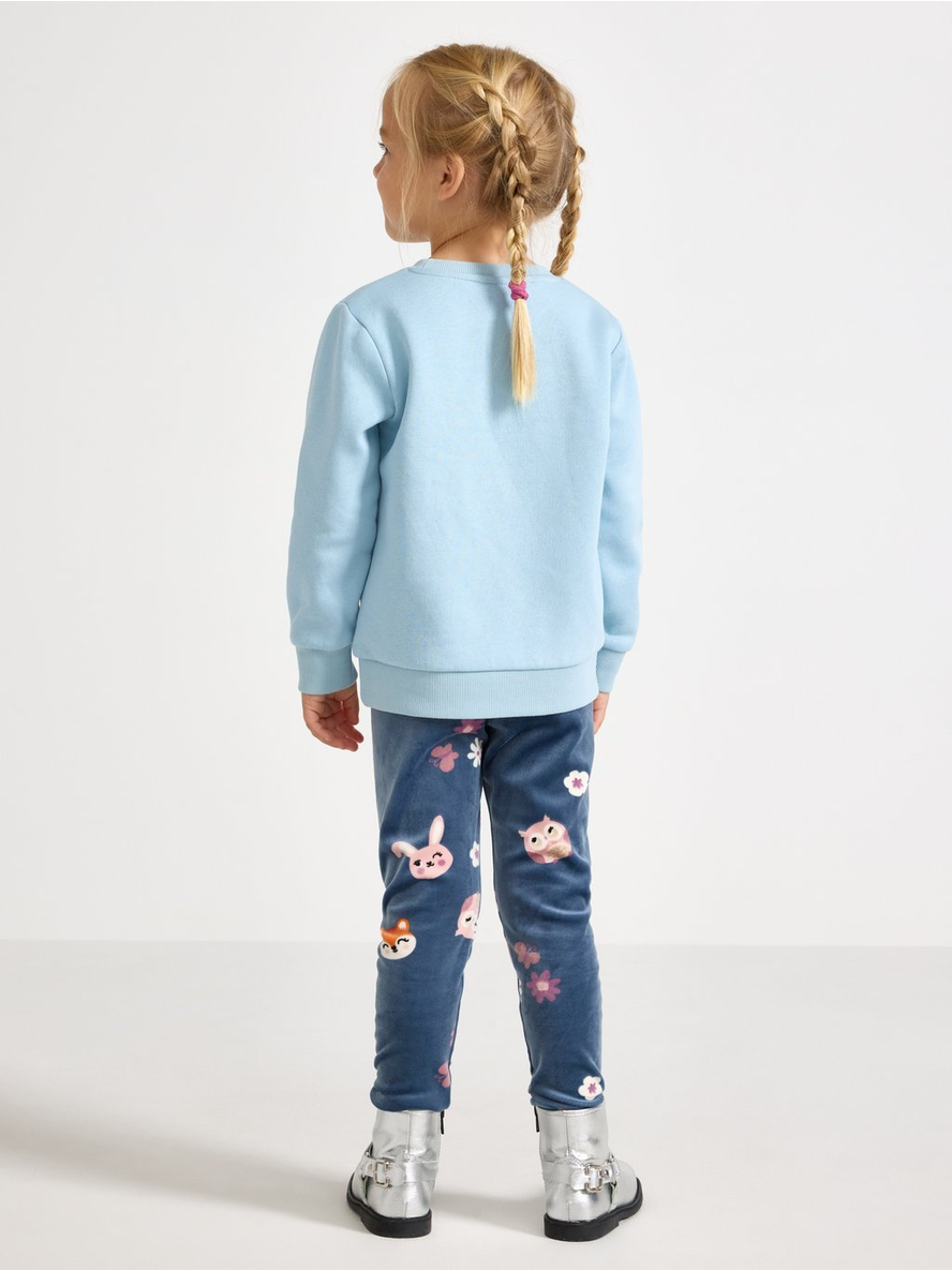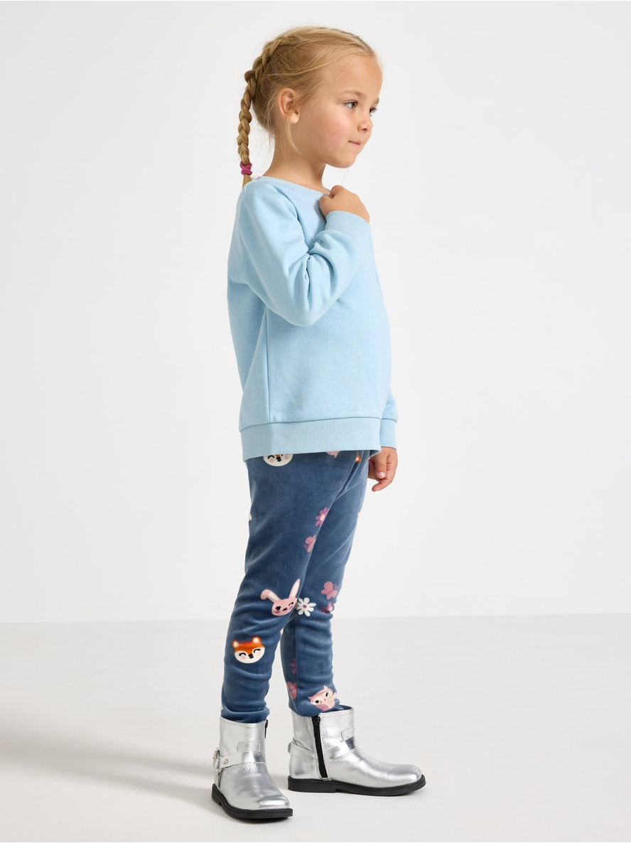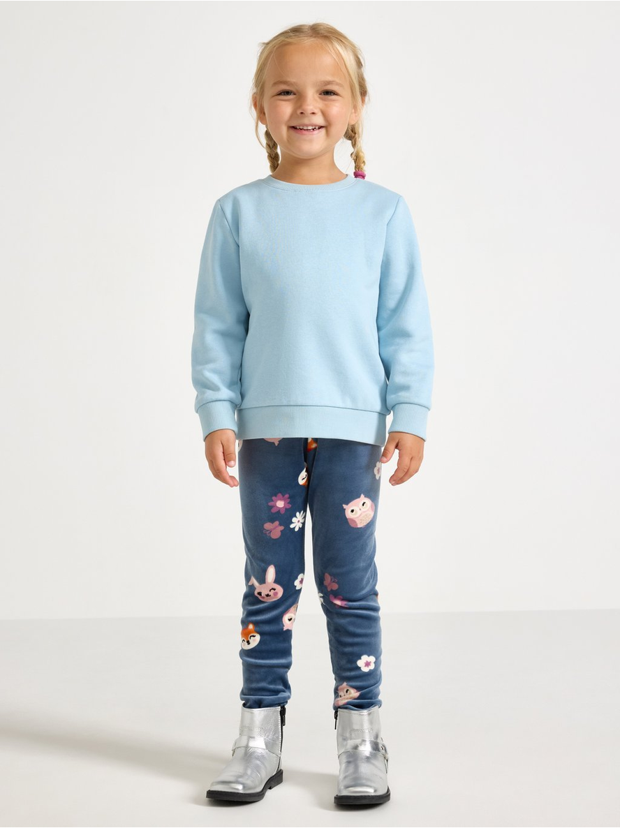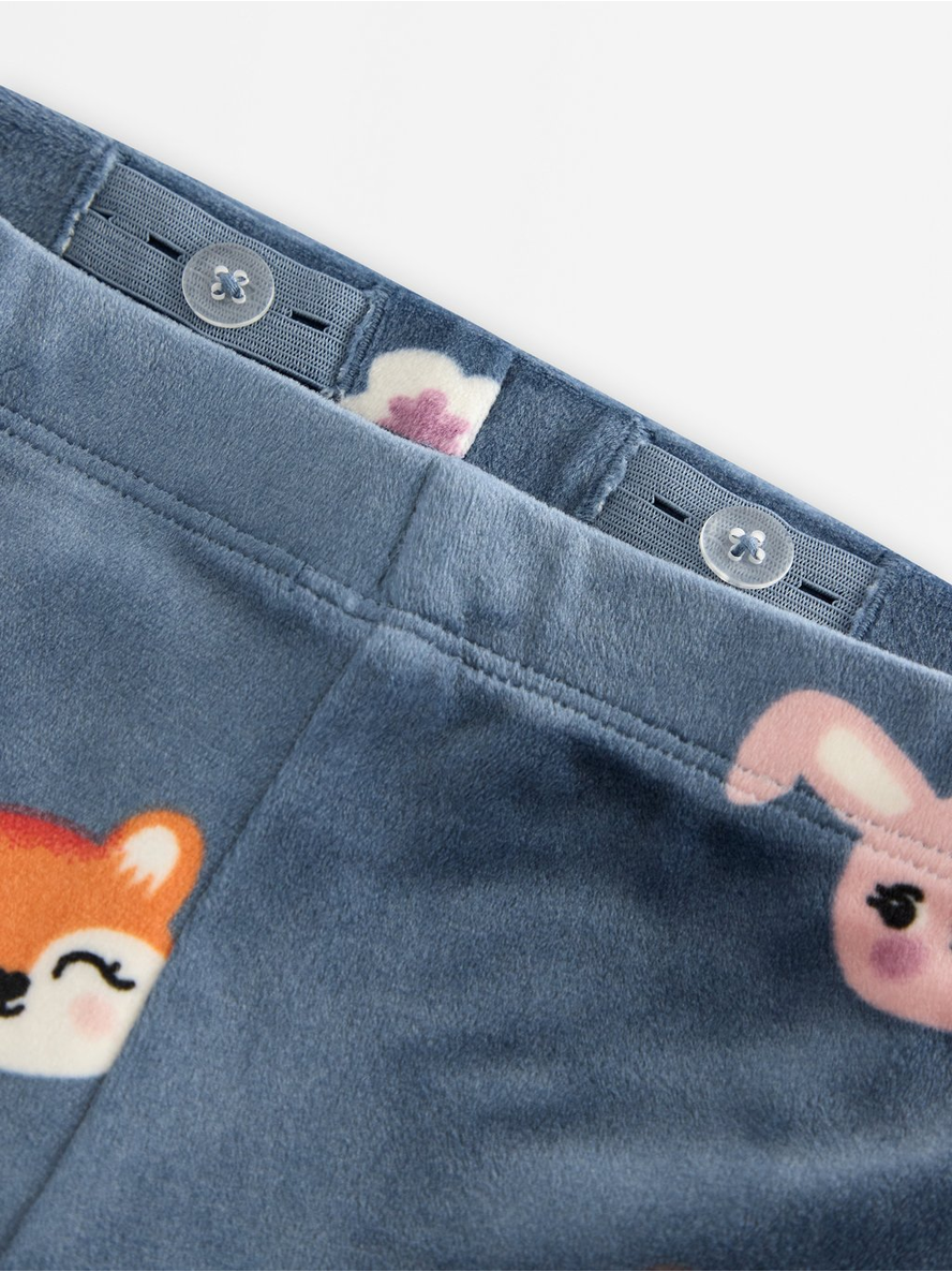 Soft velour leggings with an adjustable, elastic waist. Adjustable elastic waist Allover pattern Contains 95% recycled polyester 95% pólýester 5% elastan