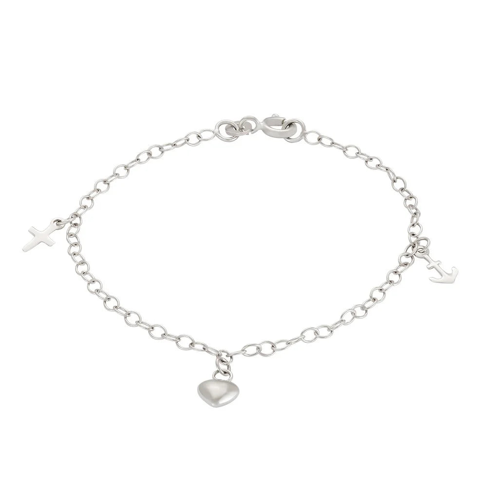 Barnaarmband - Trú, von og kærleikur  Vnr: 80250620900 Fallegt armband með krossi, akkeri og hjarta  Rhodiumhúðað silfur Lengd: 15cm